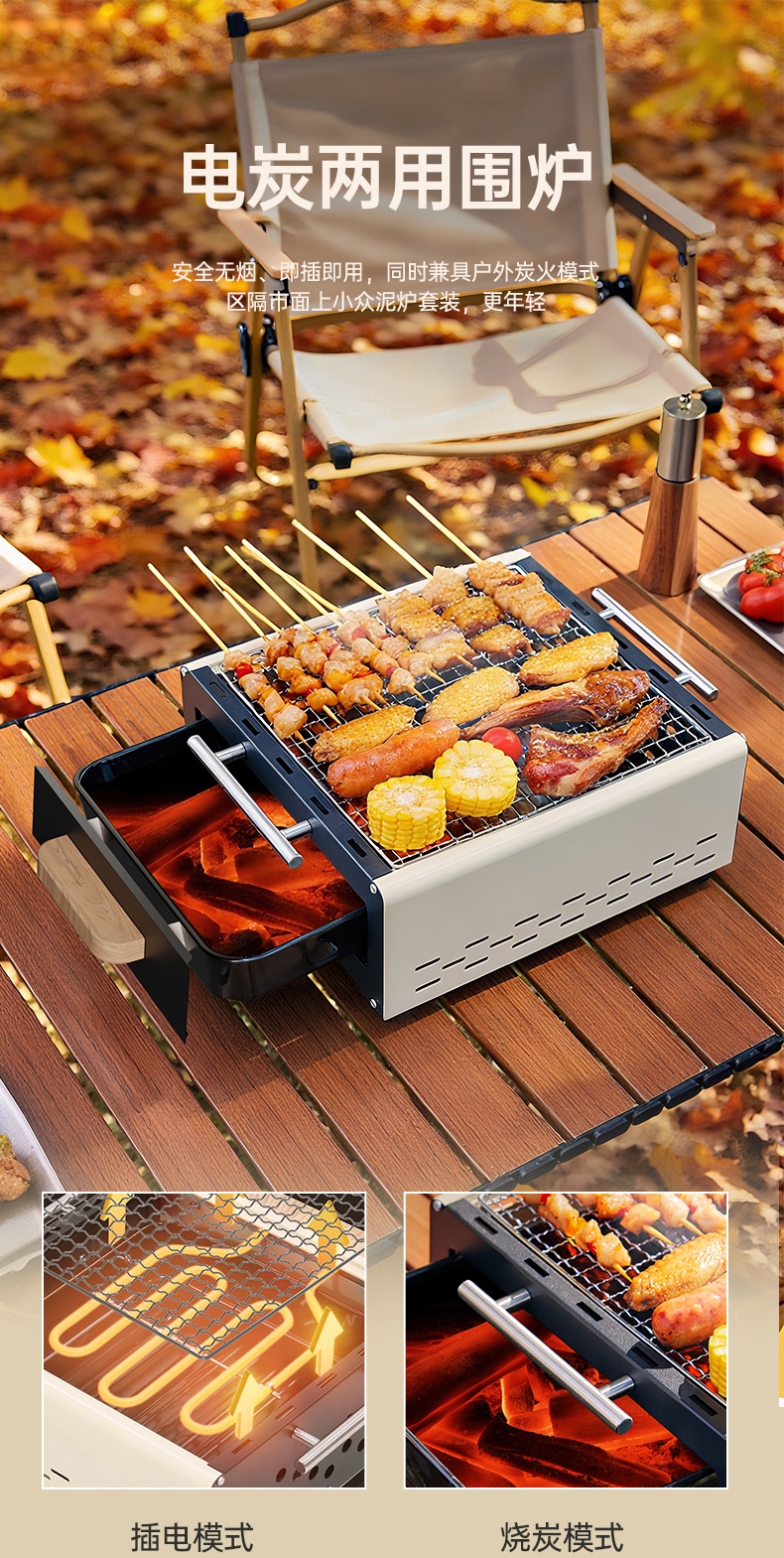 过年最有热闹的围炉,围炉喝茶打掼蛋,还配红包,春节;器盒一体专利设计;电炭两用围炉 安全无烟、即插即用,同时兼具户外炭火