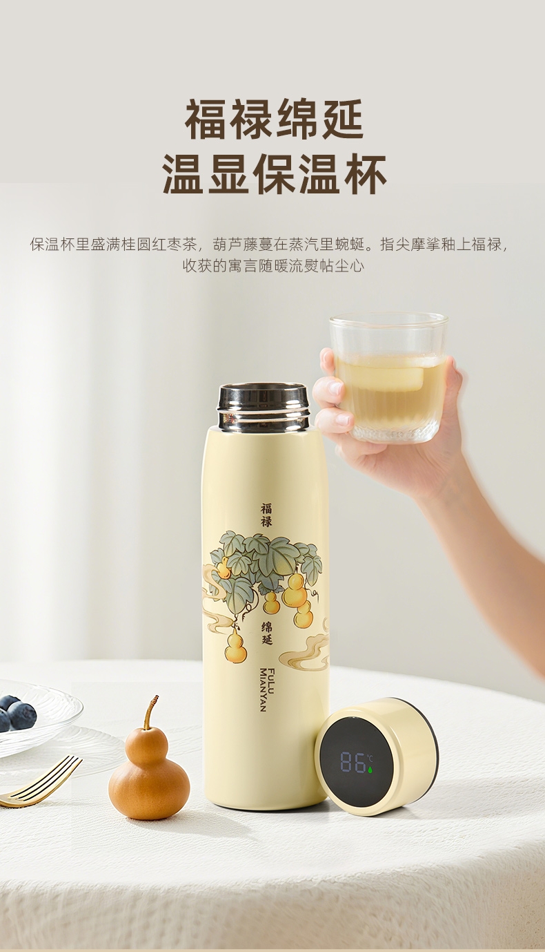 智能温显保温杯、创意晴雨伞精致香氛等实用好物;满足多场景需求;祥云至上移动电源
