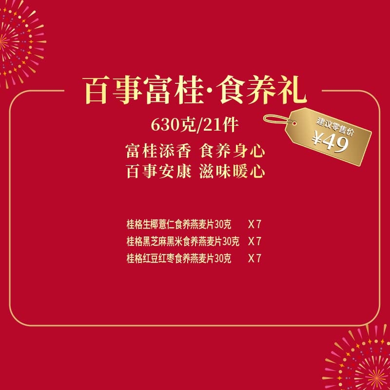 配置清单:7 X桂格生椰薏仁食养燕麦片30克 7 X 桂格黑芝麻黑米食养燕麦片 30克 7 X 桂格红豆红枣食养燕麦片 30克 赠品:透明杯含盖