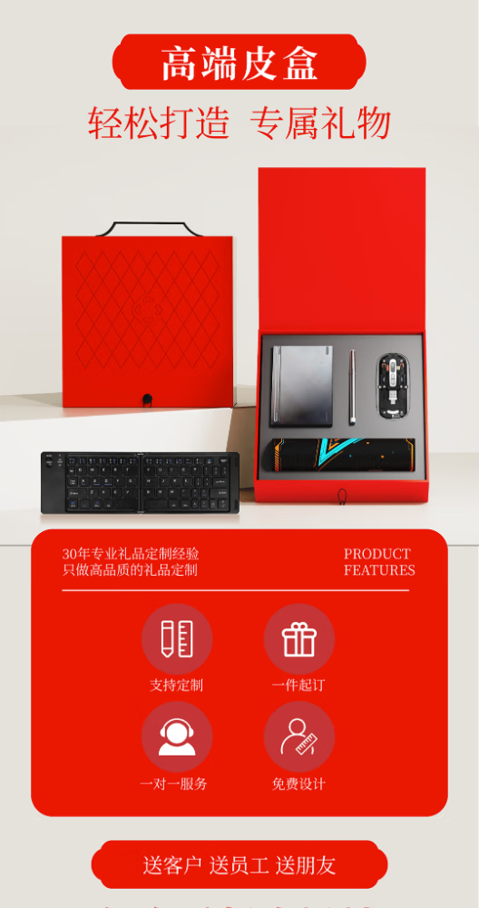 配置清单:高端手提皮质礼盒*1、折叠键盘*1 机甲风鼠标*1 金属签字笔*1 鼠标垫*1