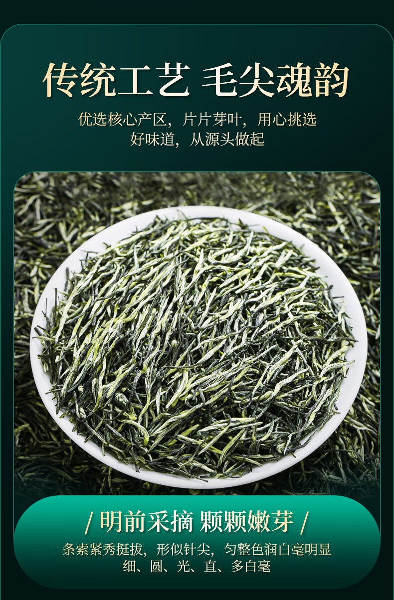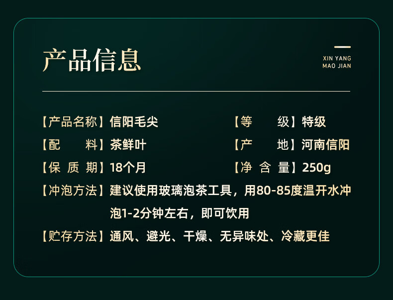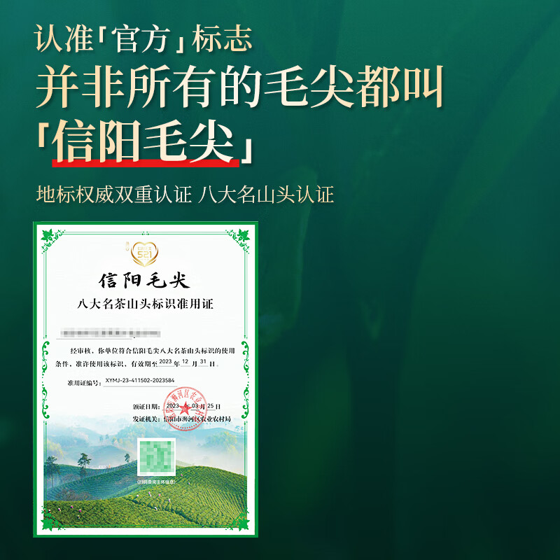 源自信阳毛尖核心产区-四望山顶茗然基地;芽叶肥壮,叶面光润油亮,香气浓郁,滋味醇厚;精美礼盒包装,大分量,待客,送礼都很合适