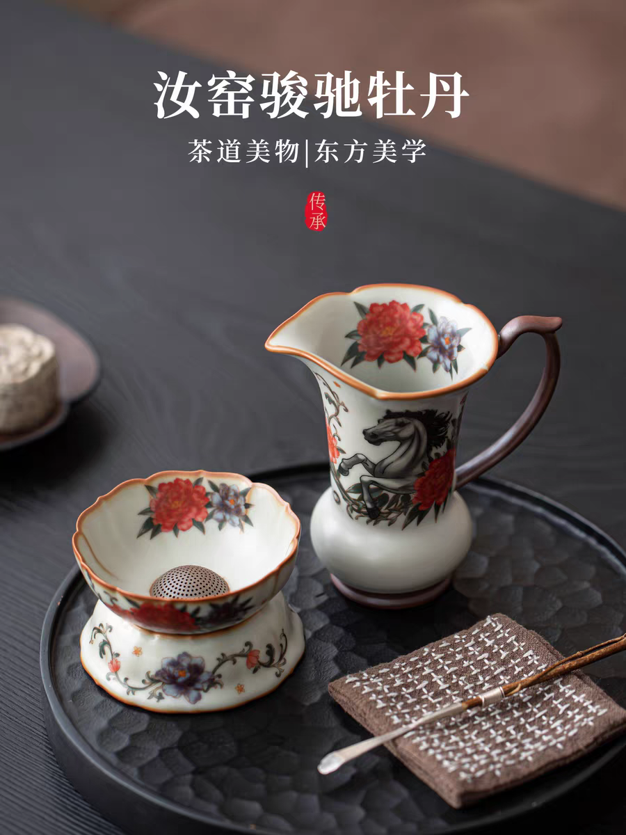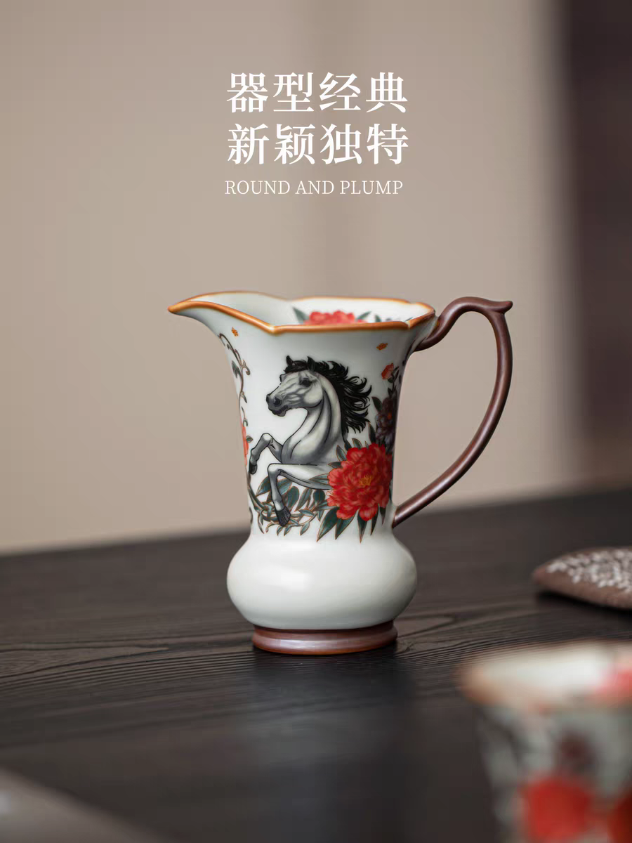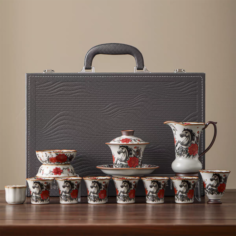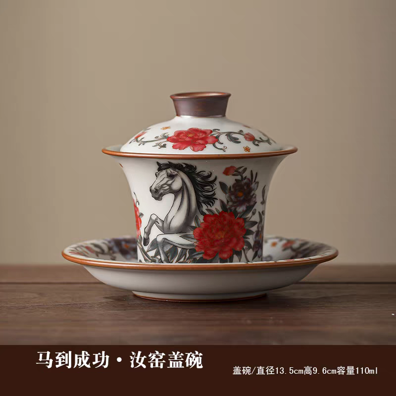 开门红马到功成亚黄汝瓷茶具
