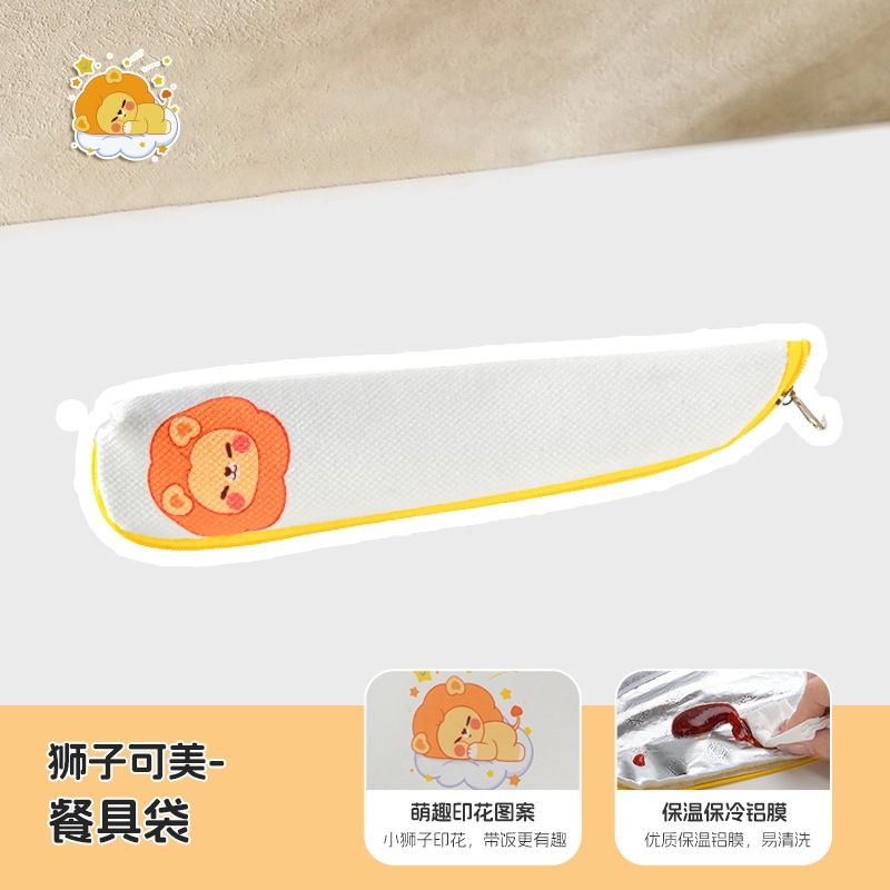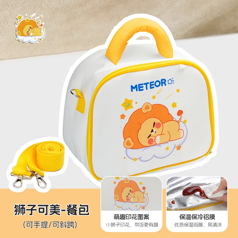 配置:长方形二分格*1+汤桶*1+狮子长带布包*1+ 餐具包(带勺筷)+零钱包
