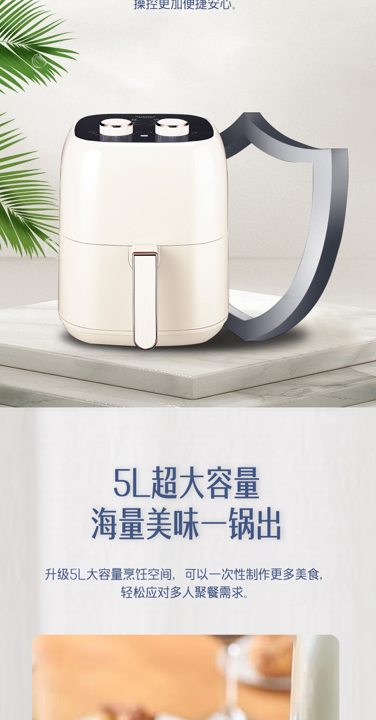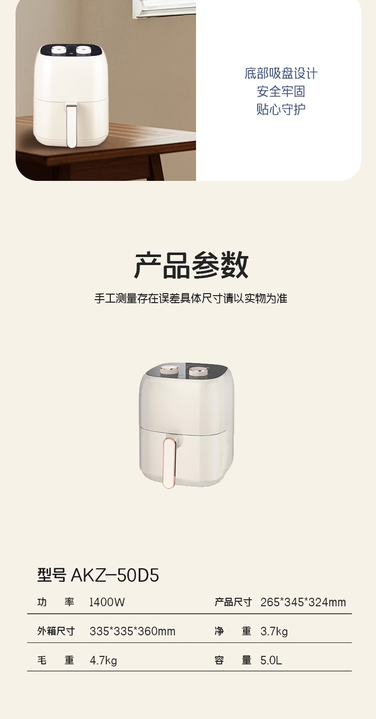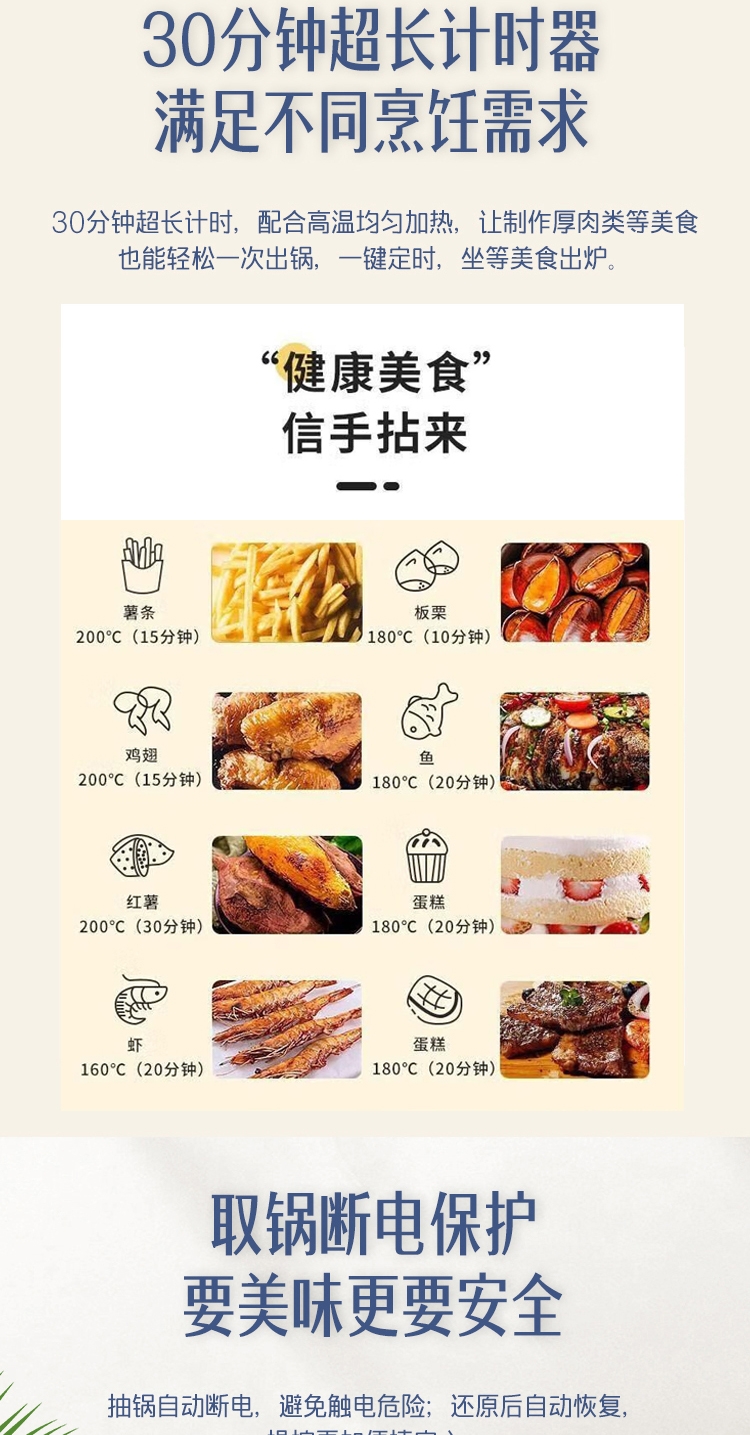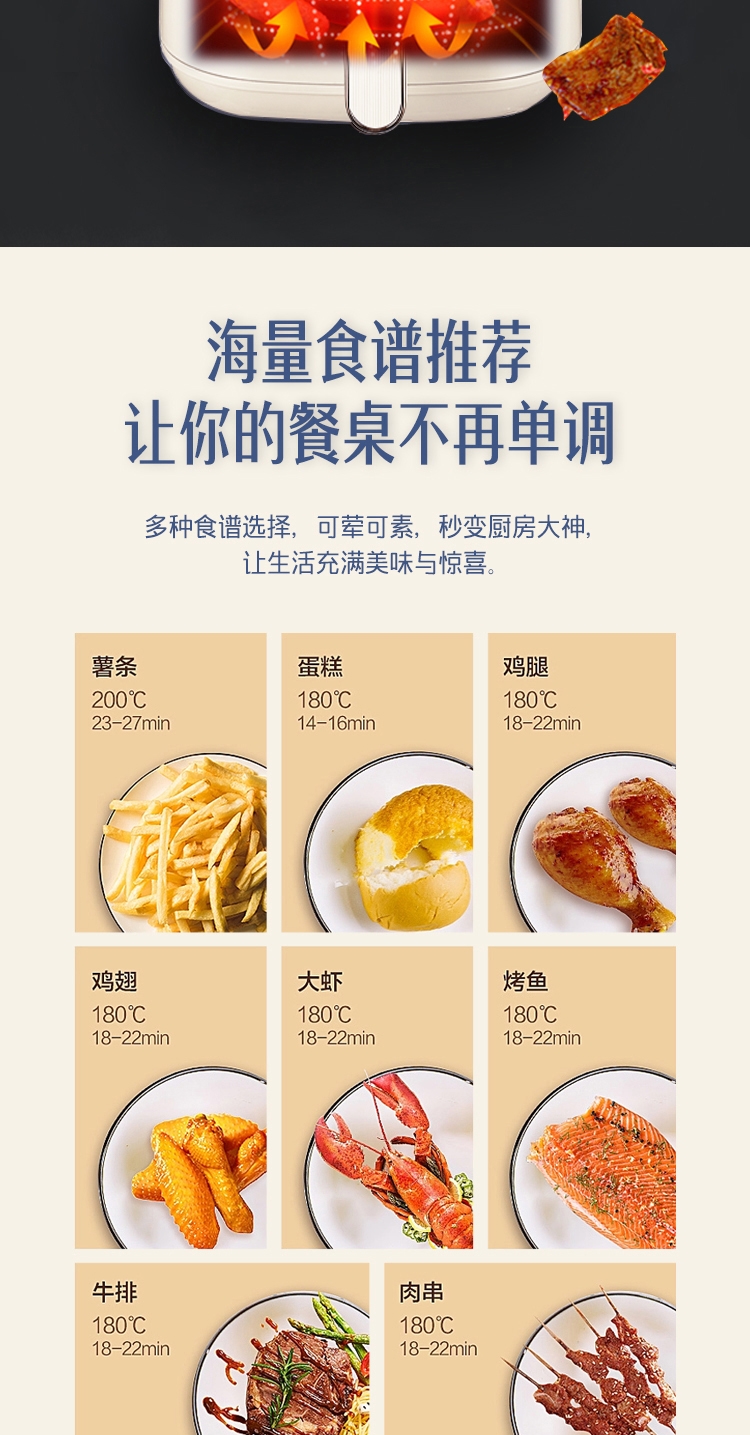 双旋钮设计温度+时间精准控制成就大厨水准;1400W强劲热风,澎湃热量,食材熟的快,超大功率;360°热风循环技术,食材均匀受热:将美味锁在食物