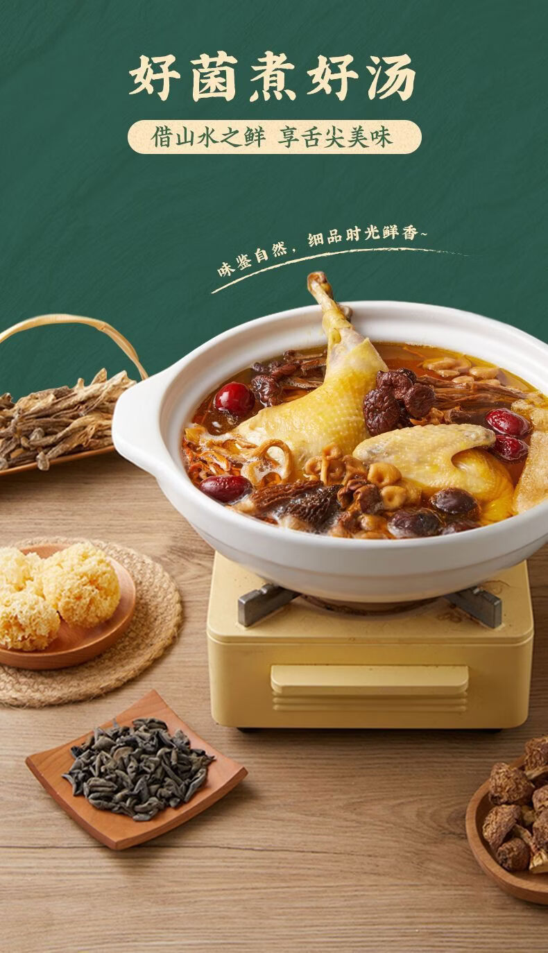 慢火低温烘干,锁住菌菇鲜香;原色原味;鲜香味浓