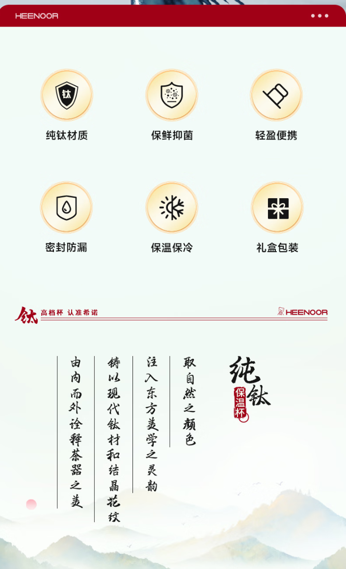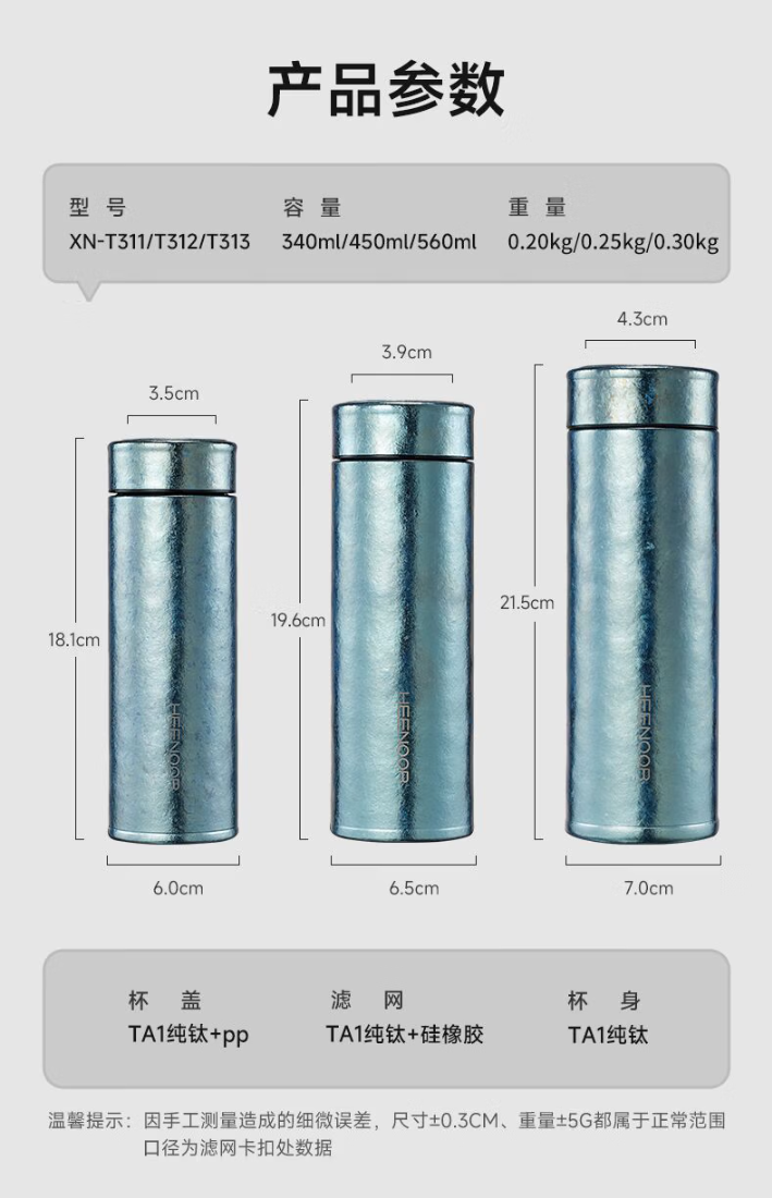 99%纯钛 保鲜抑菌锁温;专利结晶花纹 镌刻自然之美;长效保温 时刻守护