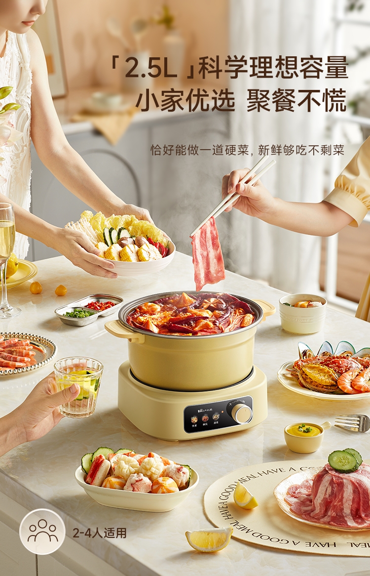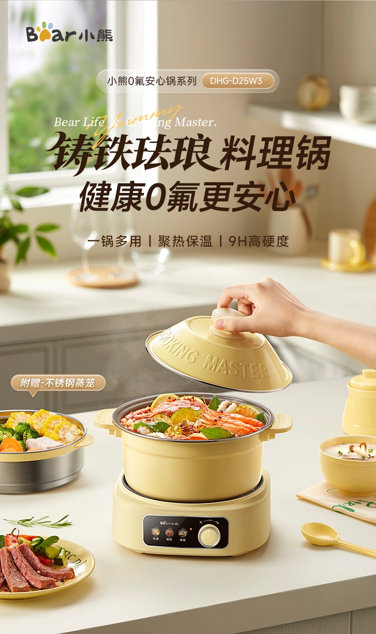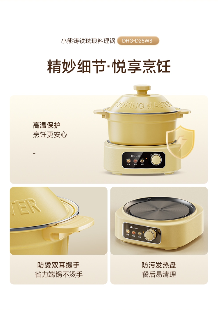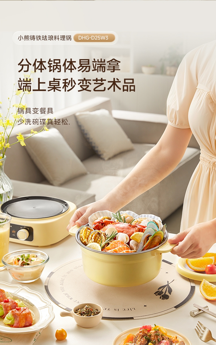 小熊 电火锅分体式电炒锅铸铁珐琅锅DHG-D25W3