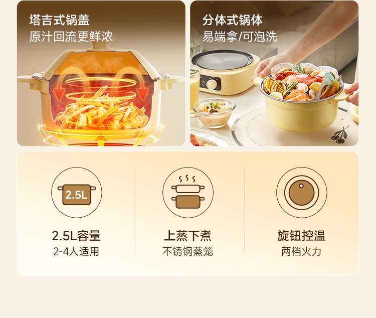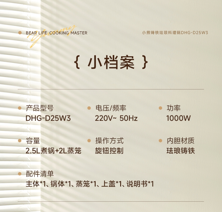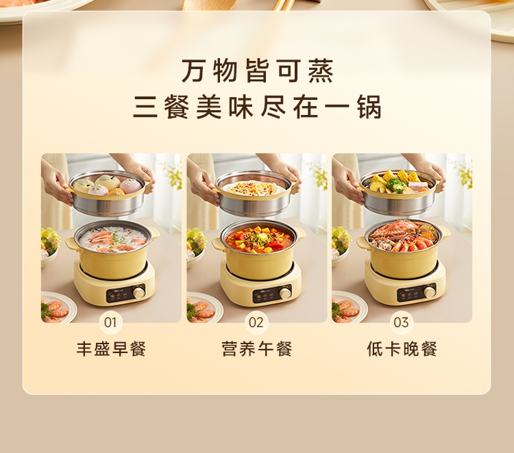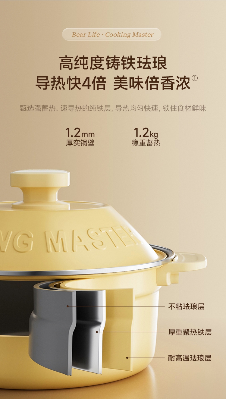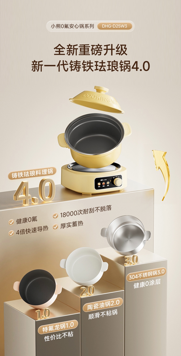 小熊 电火锅分体式电炒锅铸铁珐琅锅DHG-D25W3