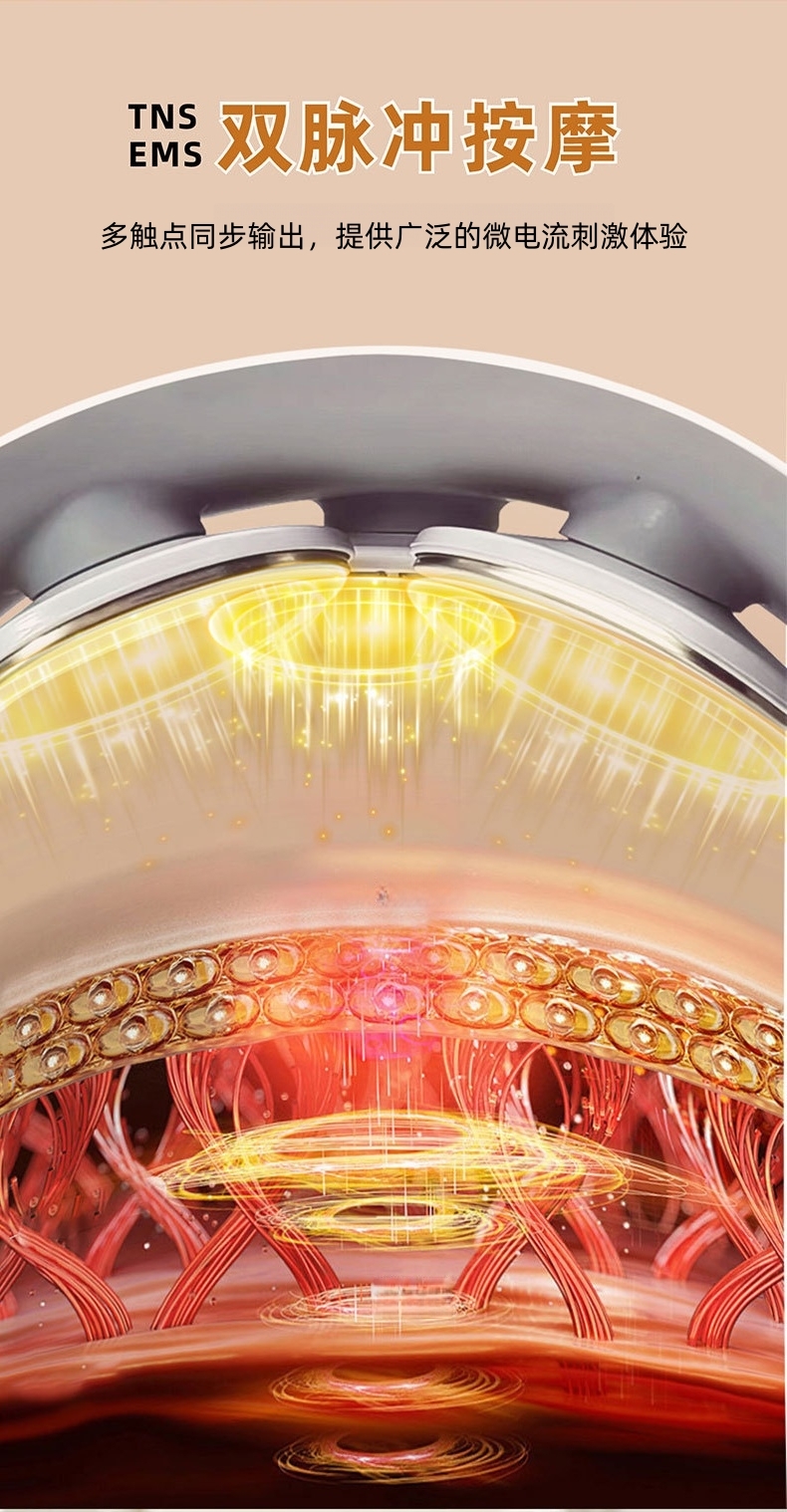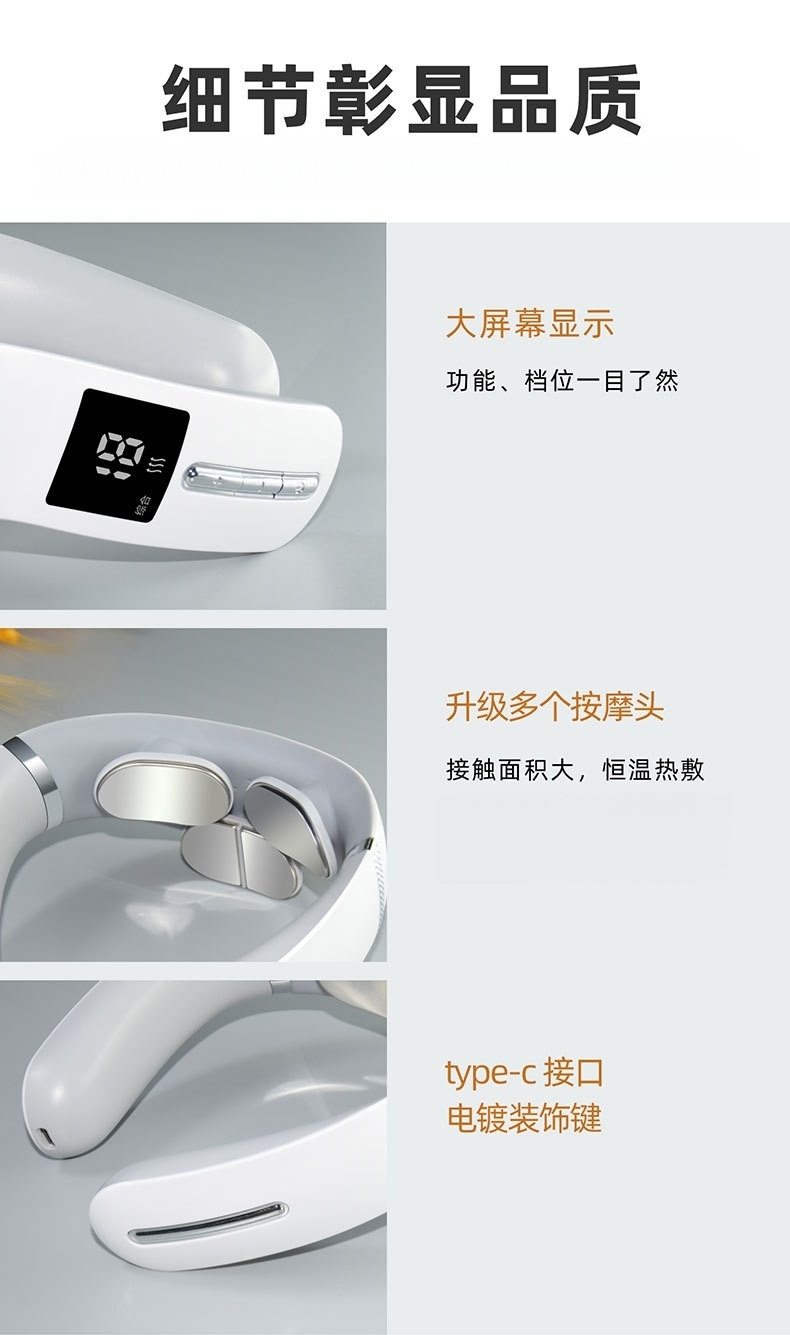 大面积多贴片设计,覆盖更广肌群,放松更全面;双脉冲深层按摩,TENS+EMS技术;10模式×19档强度,模拟真人揉捏;42℃恒温大面积热敷,热量快速渗透;大屏显示+语音播报,模式档位清晰可见
