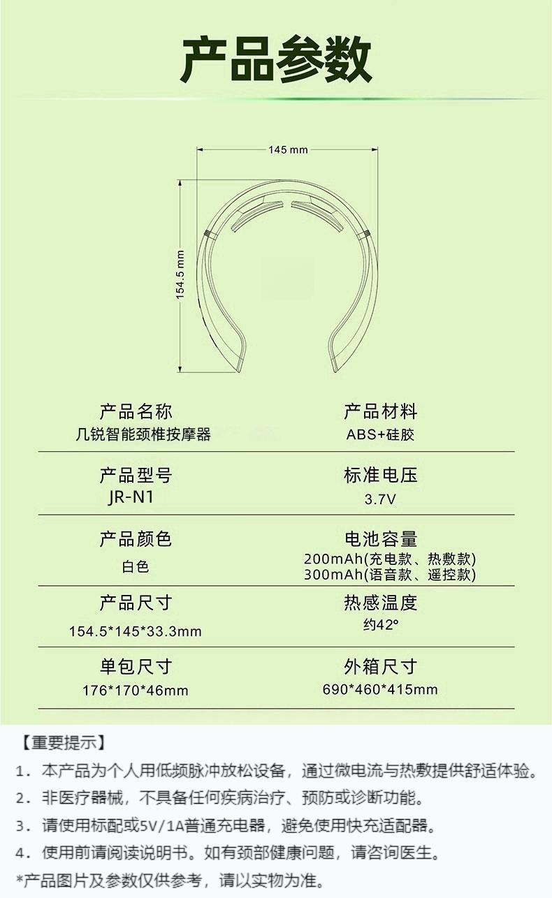 JIRUILIFE 几锐智能颈椎按摩仪白色JR-N1