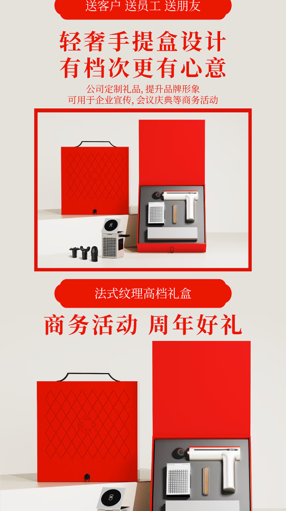 配置清单:手提皮盒*1、SKG筋膜枪*1 六合一多功能磁吸无线充*1 车载香薰*1