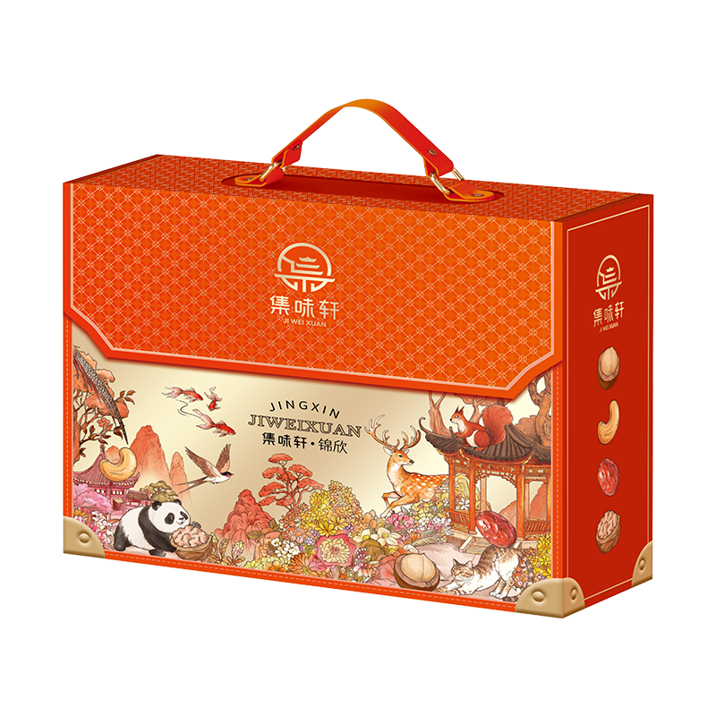 配置清单:越南紫衣腰果88g 美国加州开心果88g 新疆纸皮核桃188g 五香打手瓜子188g 泰国龙眼干288g 夹层山楂288g 若羌灰枣288g 香酥黑豆244g