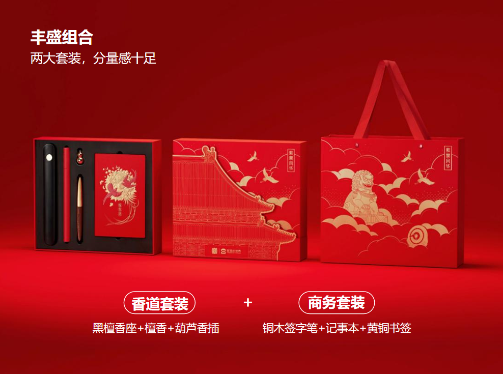 丰盛组合,两大套装,分量感十足;中式风格,精美包装;独具匠心