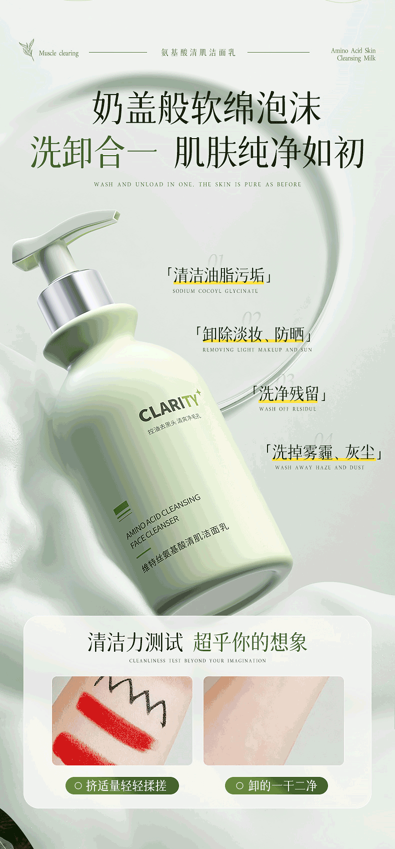 深层清洁 净透毛孔;绵密泡沫;洗卸合一