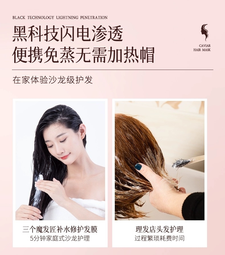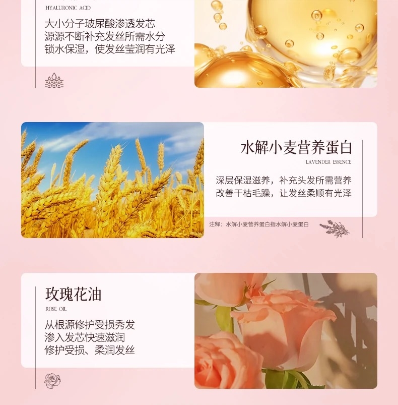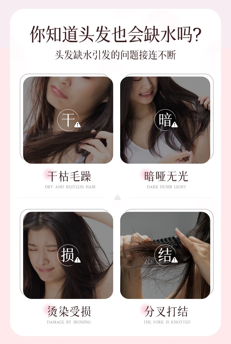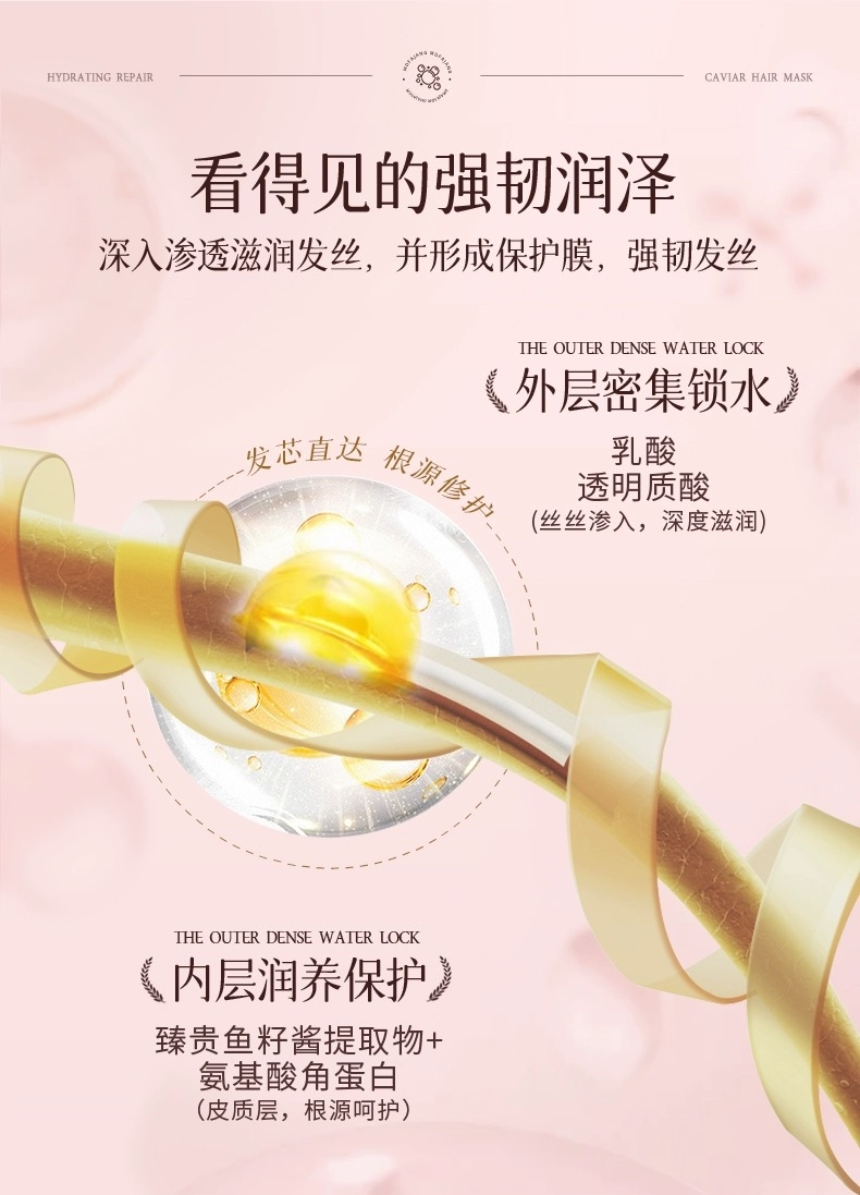 精选小分子配方;免蒸配方;持续滋养,3分钟摸出顺滑水光发