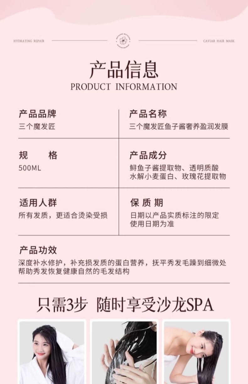 三个魔发匠 鱼子酱奢养盈润发膜500ml