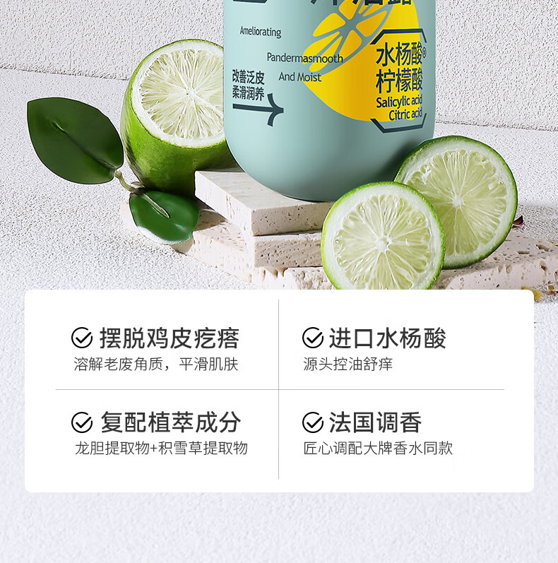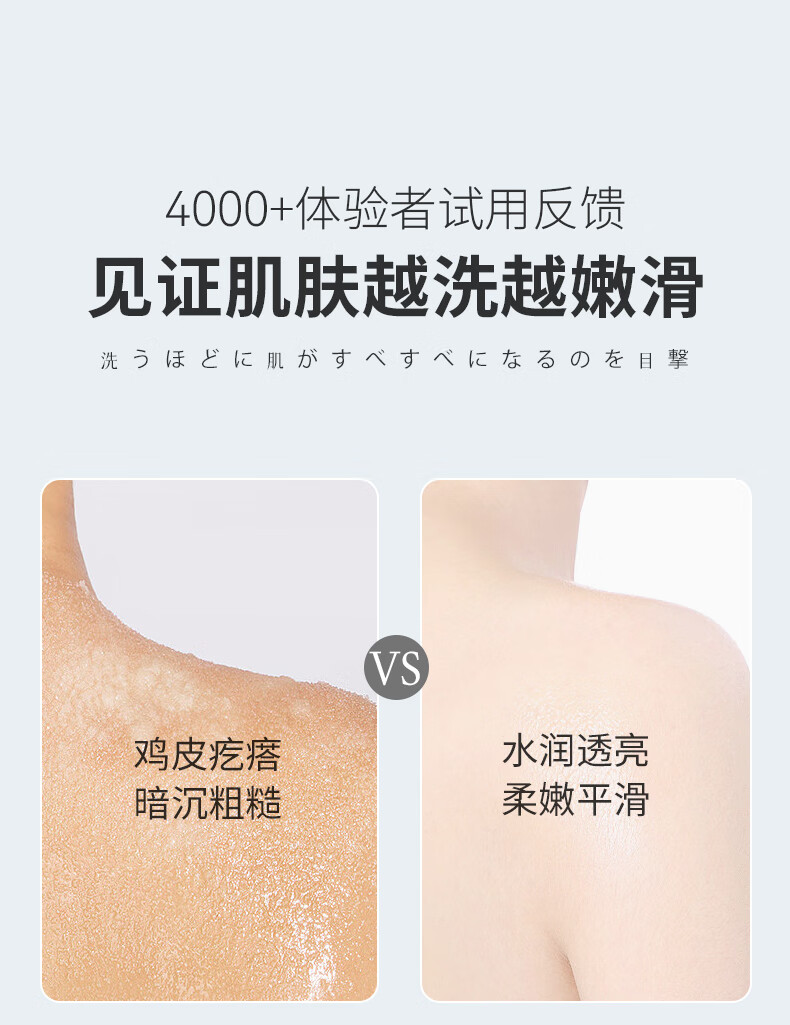 功能:温润去角质,改善粗糙暗沉鸡皮肤