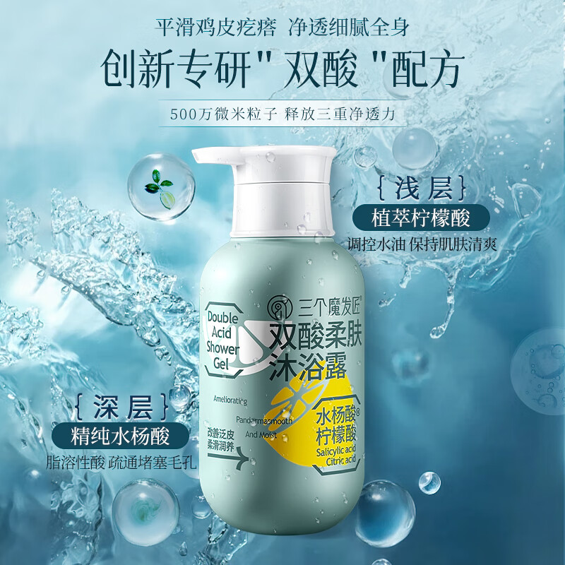 双酸刷出嫩滑好肌肤;温润去角质;改善粗糙暗沉鸡皮肤