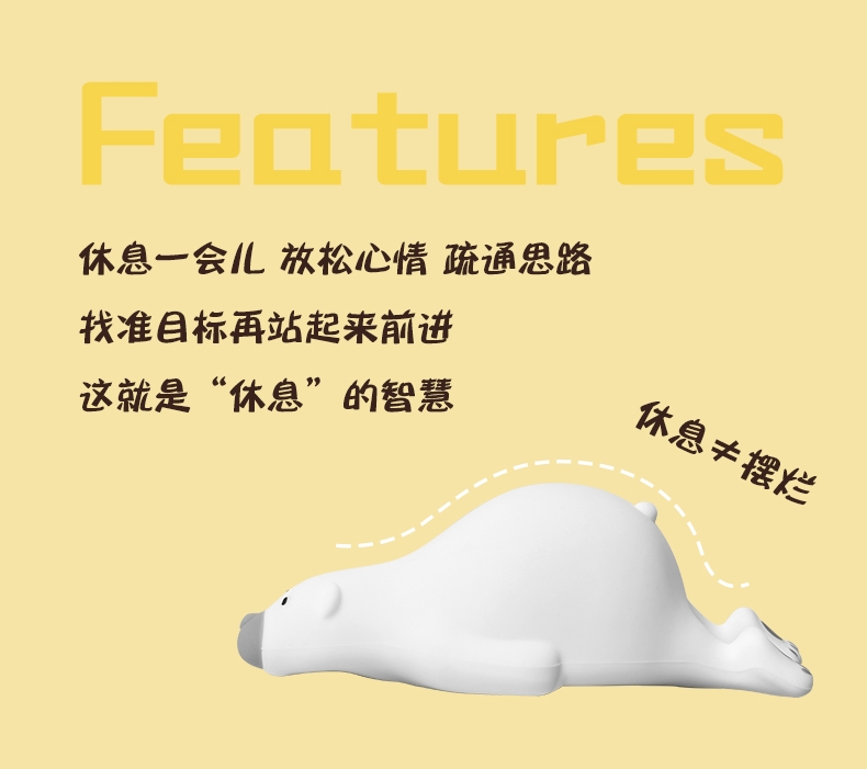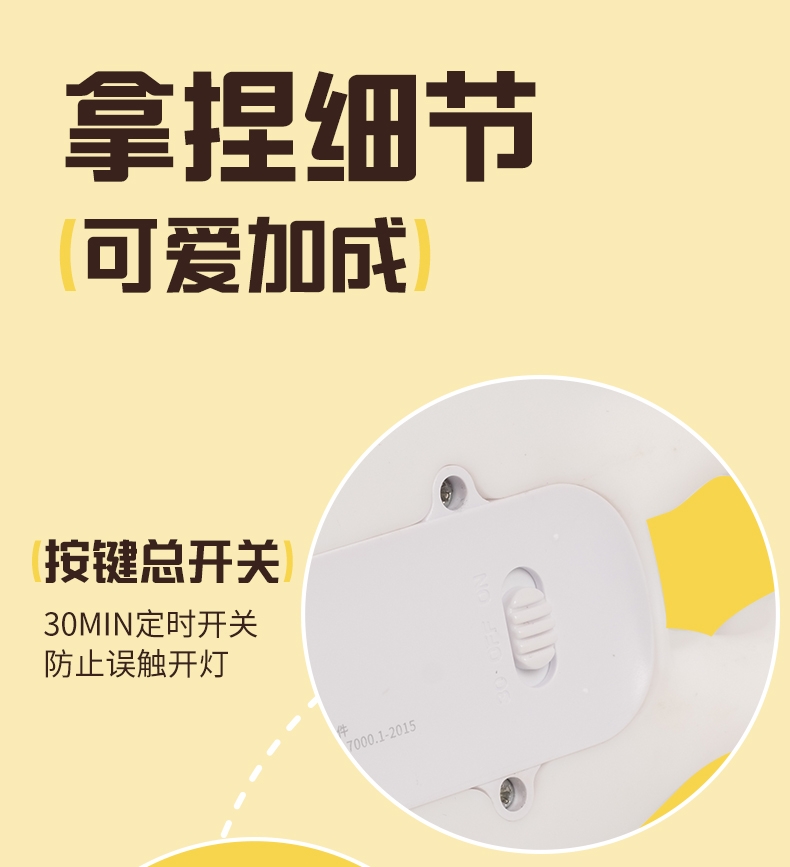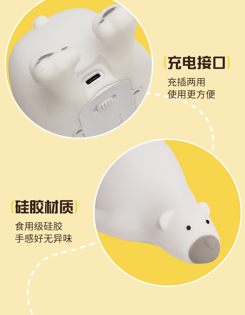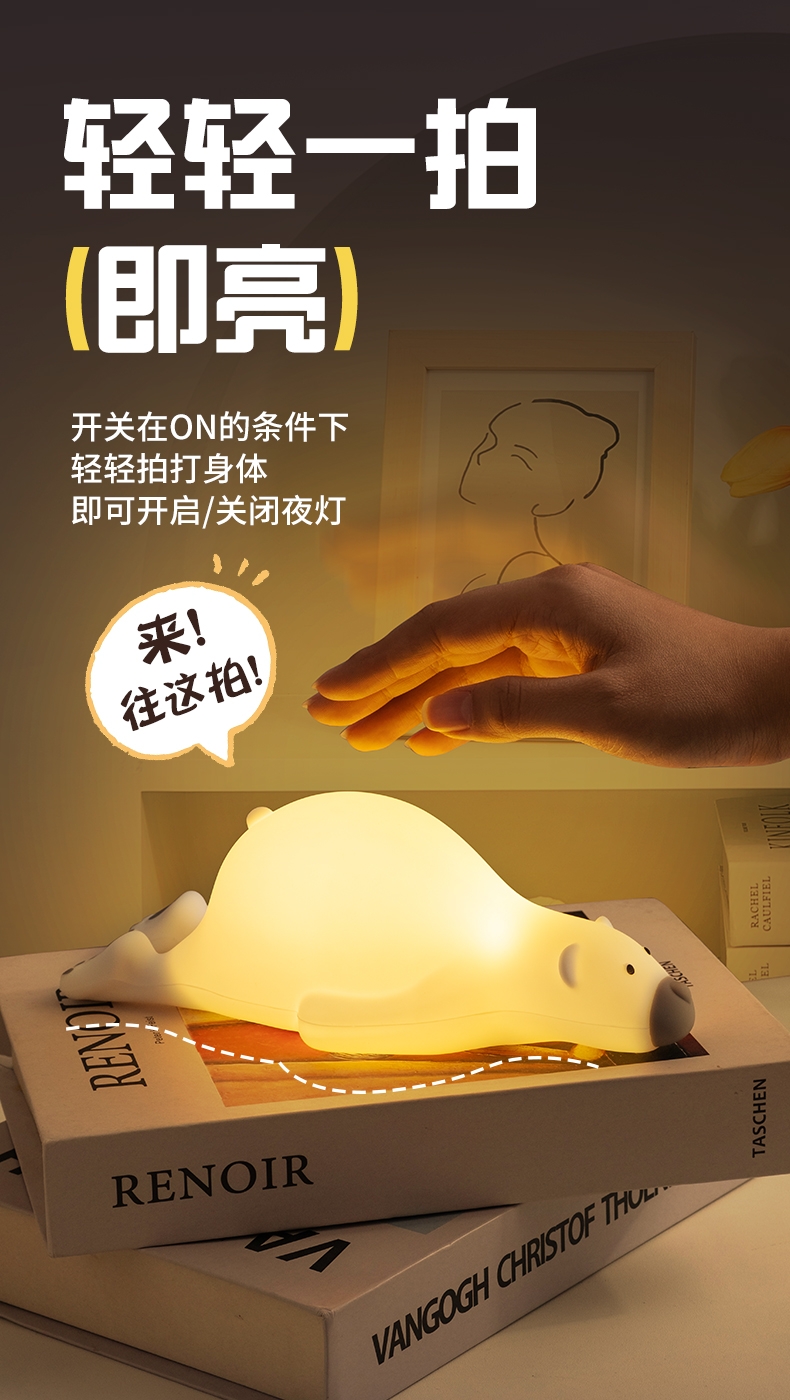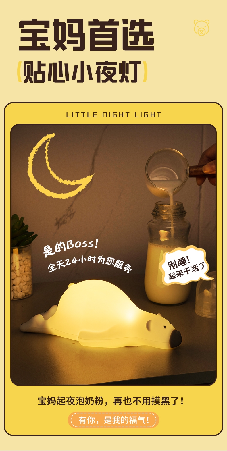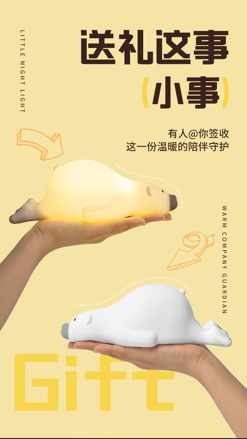 细腻硅胶,亲昵触感;舒适柔光,温润呵护;柔和暖光,强弱三档