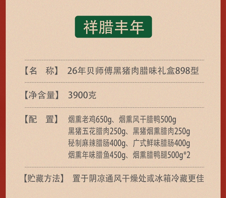 贝师傅 黑猪肉腊味礼盒3900g
