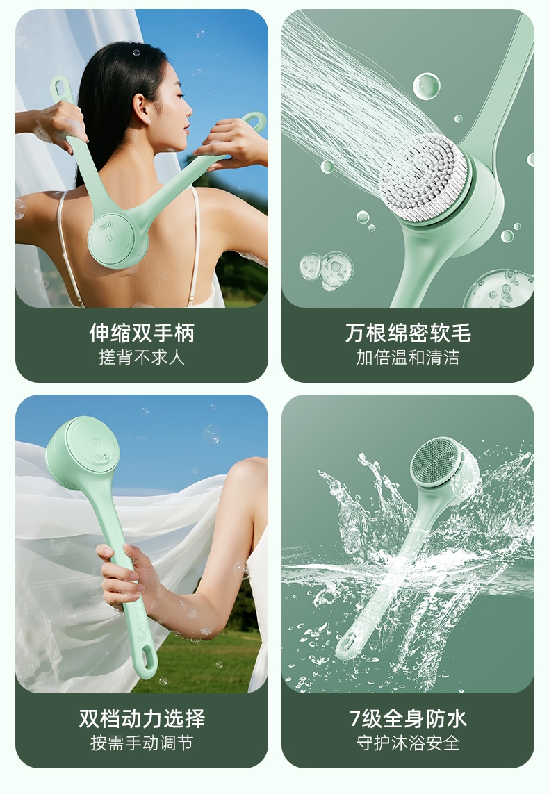 双档动力选择, 按需手动调节;7级全身防水;万根绵密软毛,加倍温和清洁