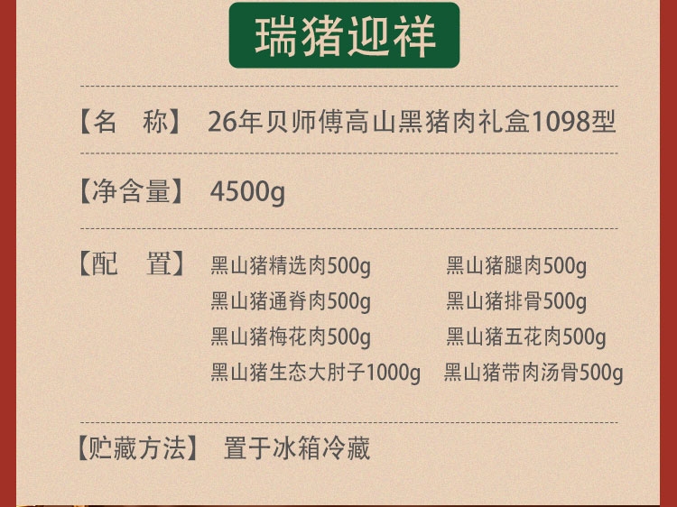 贝师傅 高山黑猪肉礼盒4500g