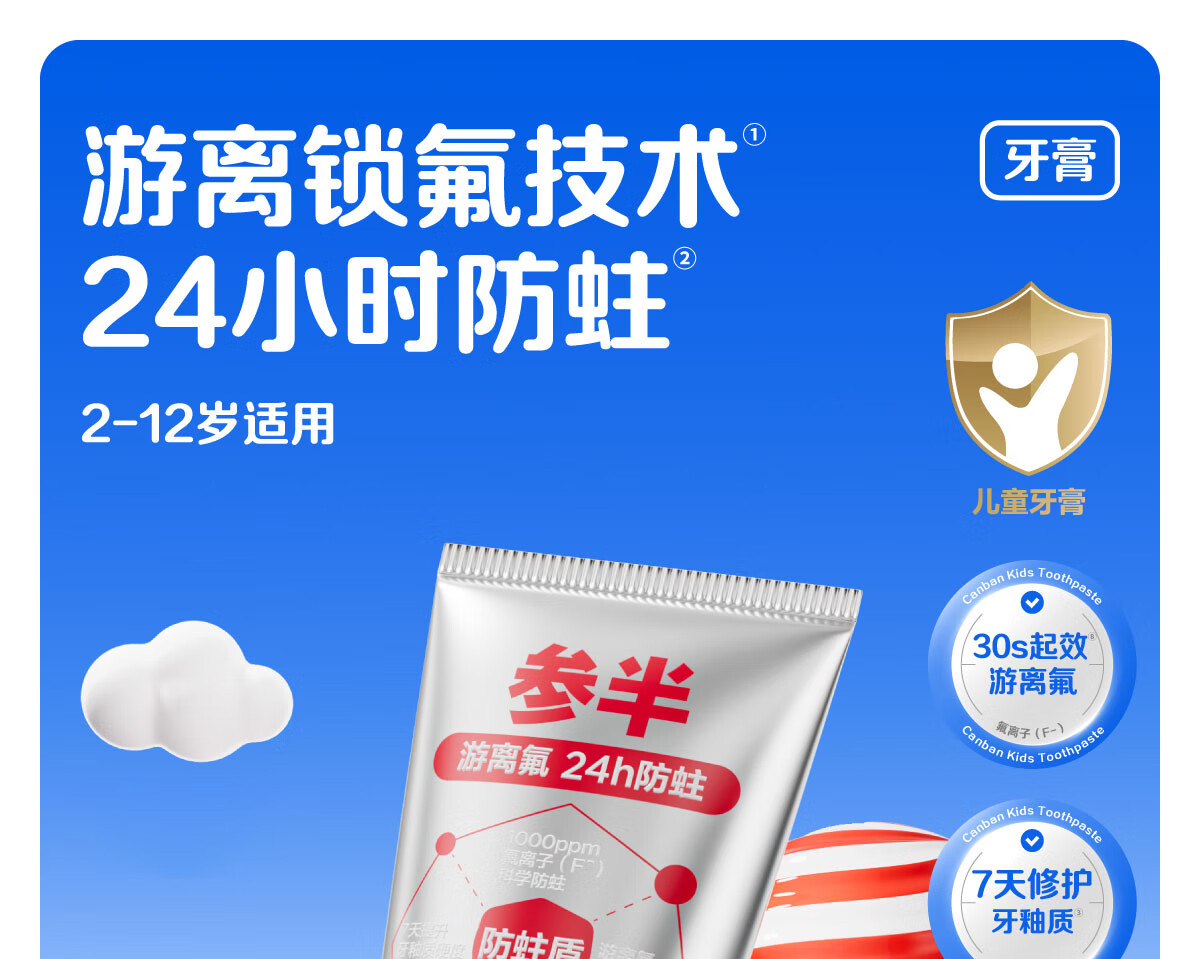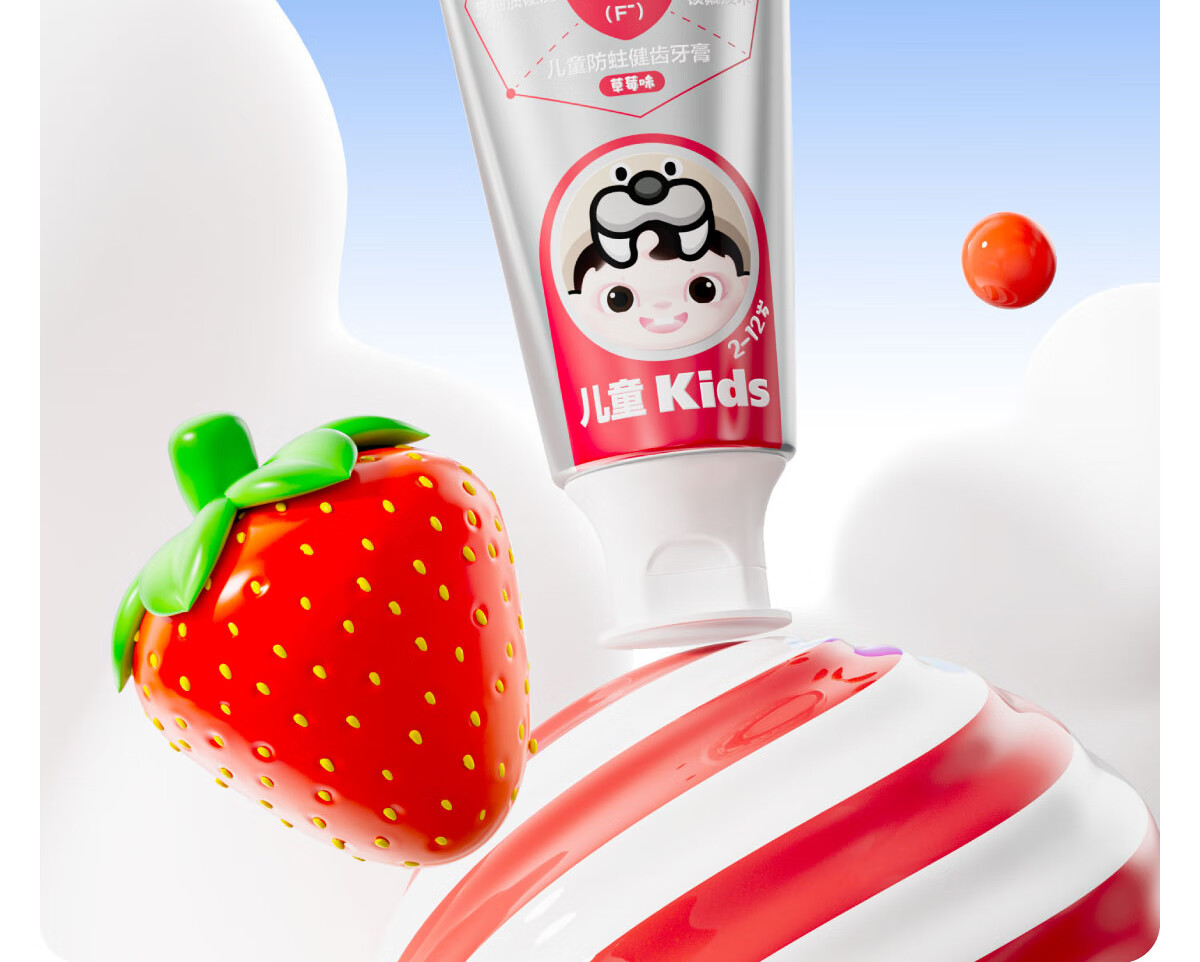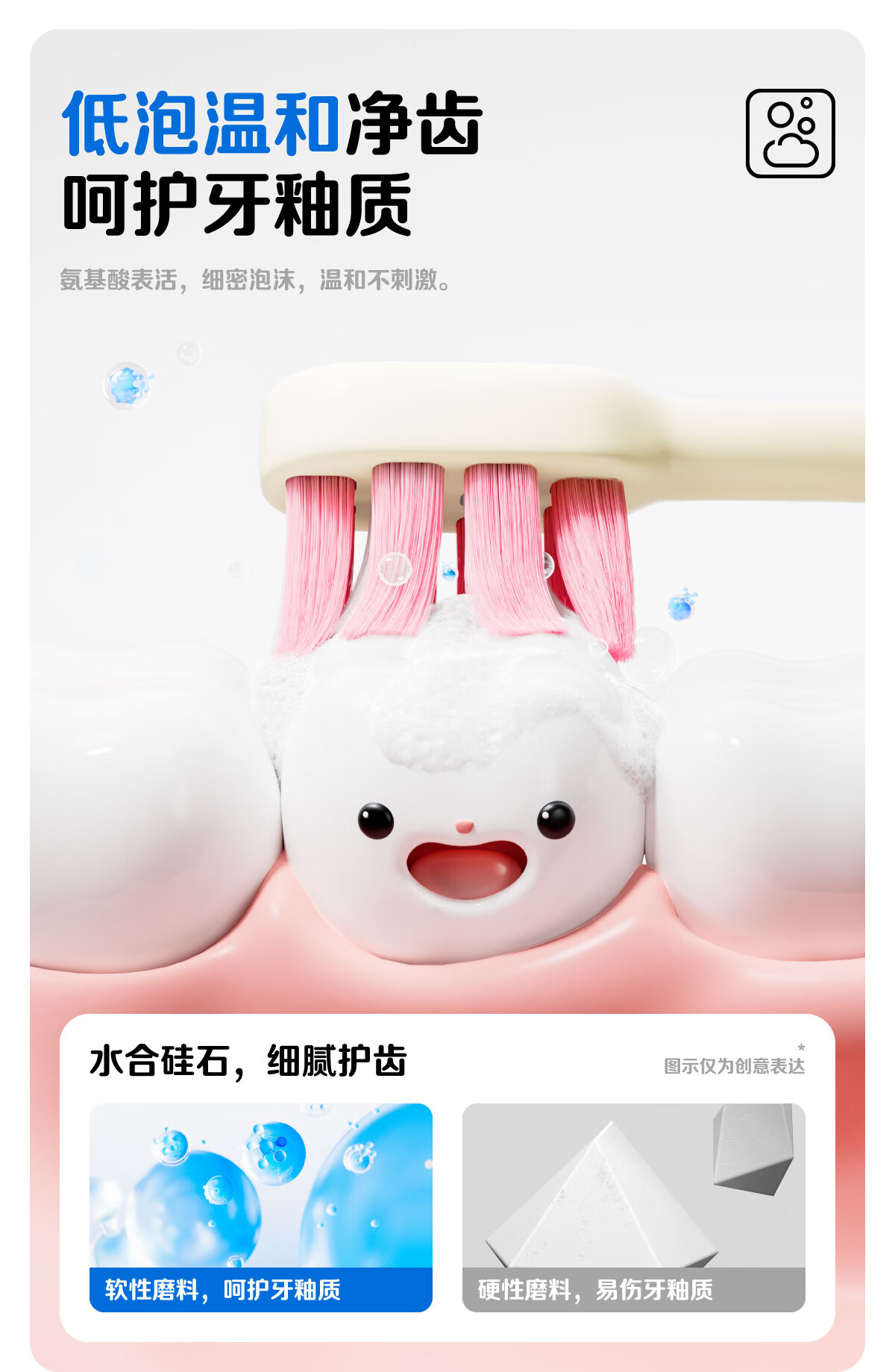 儿童防蛀健齿牙膏;固齿含氟净齿;防龋齿净齿温和