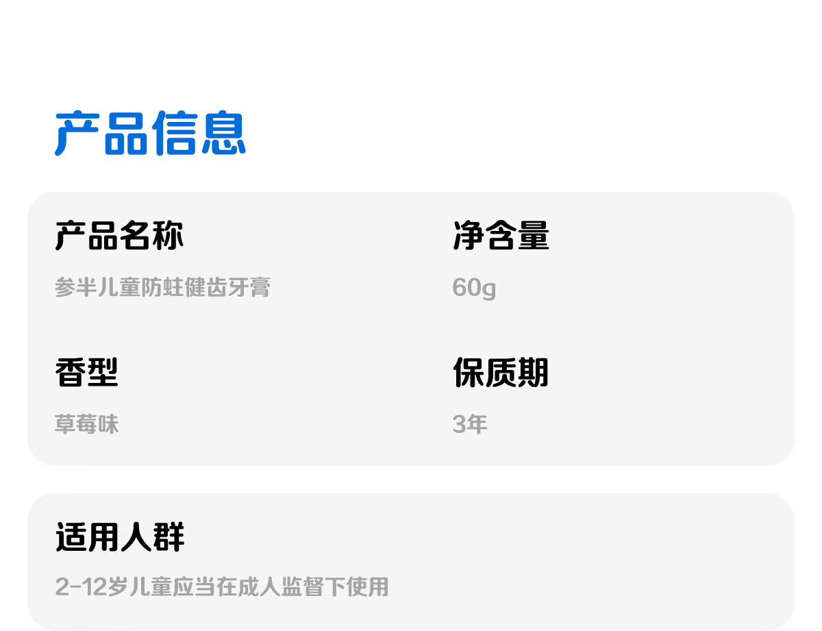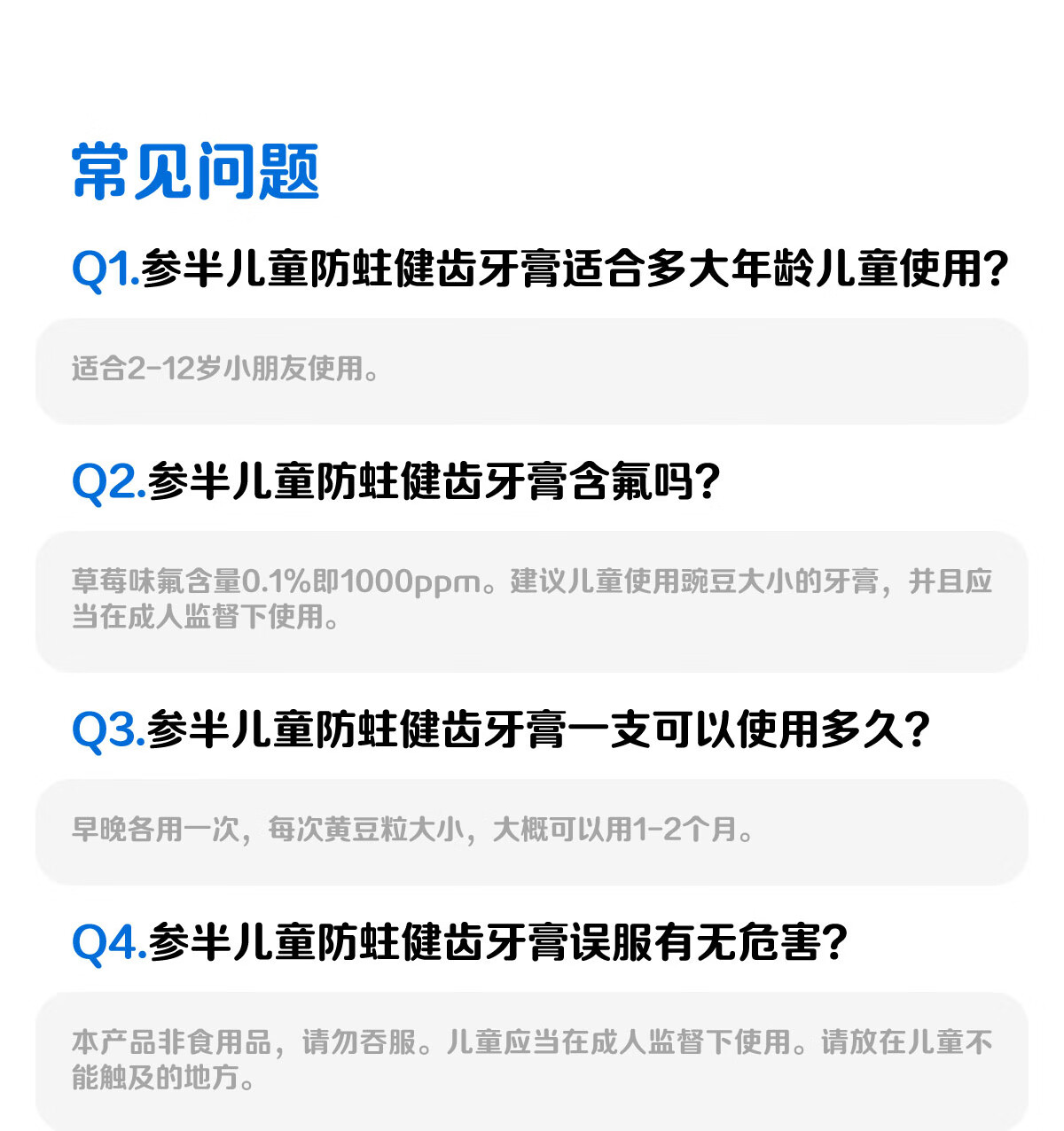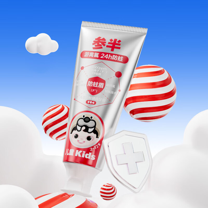 儿童防蛀健齿牙膏;固齿含氟净齿;防龋齿净齿温和