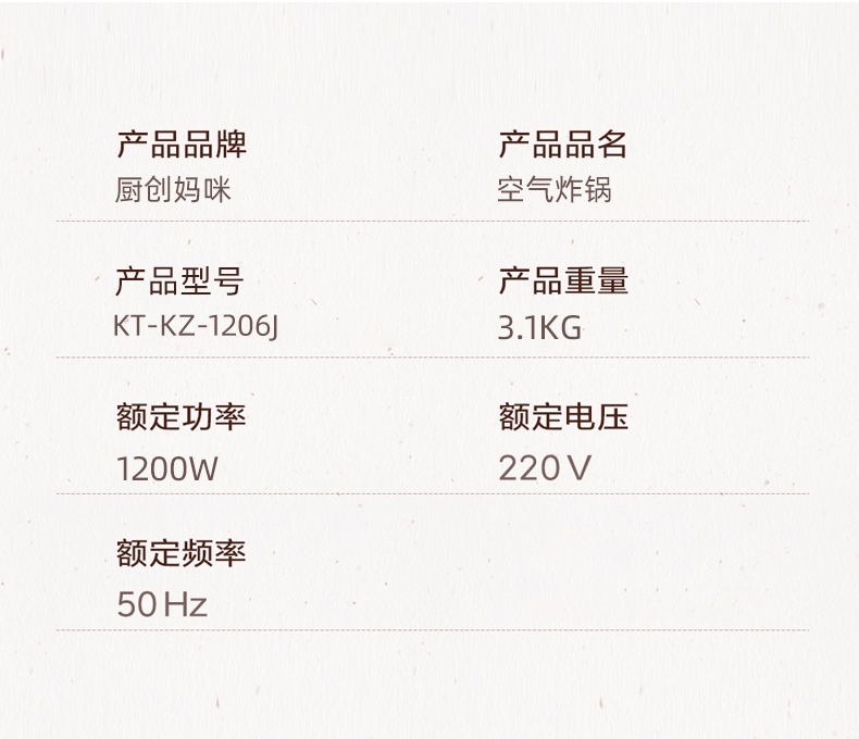 厨创妈咪 4.5L空气炸锅KT-KZ-1206J