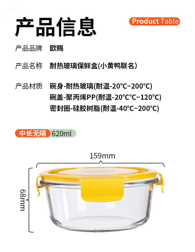 欧赐 联名款小黄鸭保鲜盒两件套B002-6