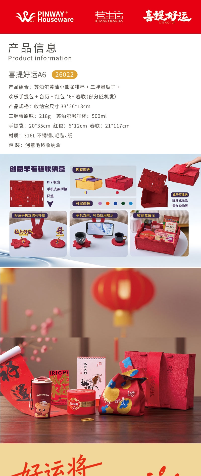 新年伴手礼;春联台历大礼包套装;316L咖啡杯