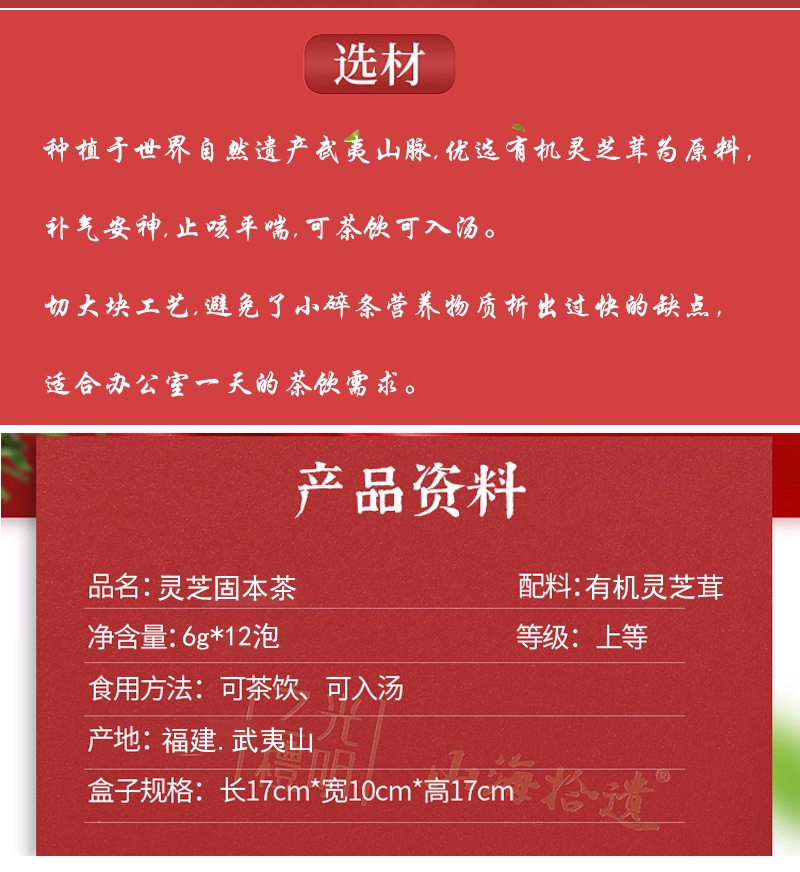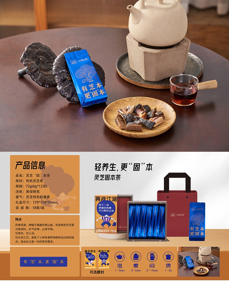 有机灵芝精粹 滋养根源健康;菌香馥郁悠长 品饮韵味十足;精美礼盒盛装 送礼体面之选