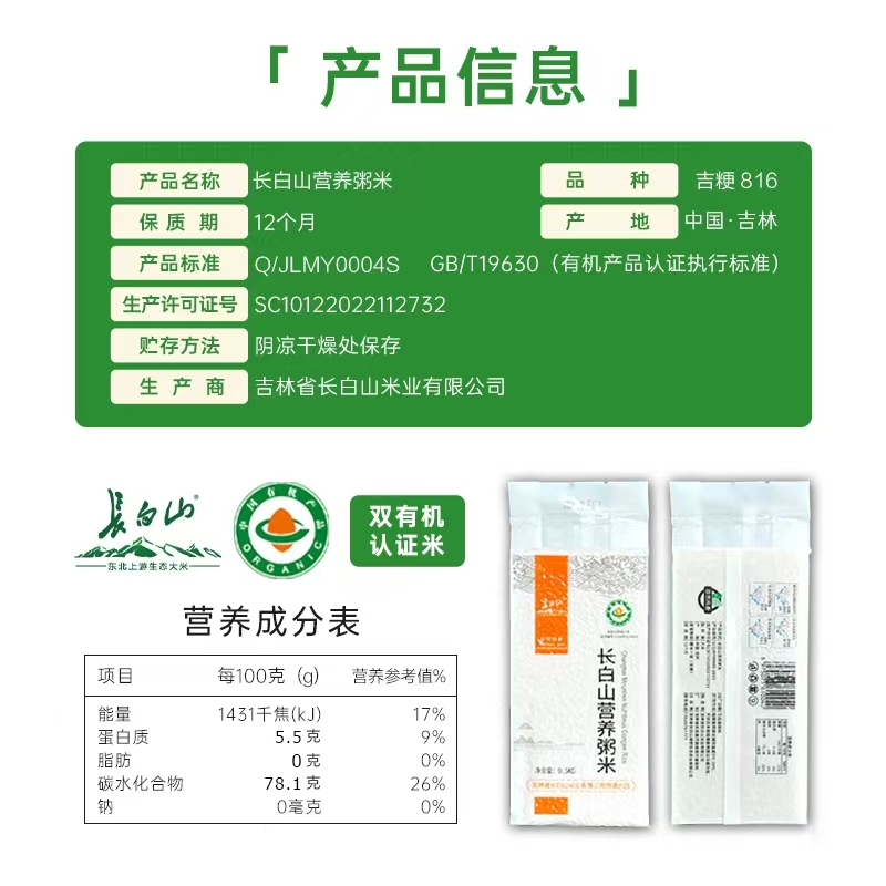 长白山 有机营养粥米500克
