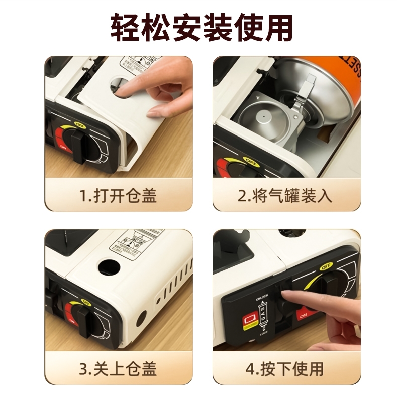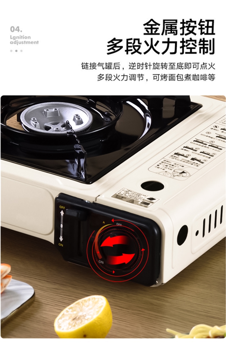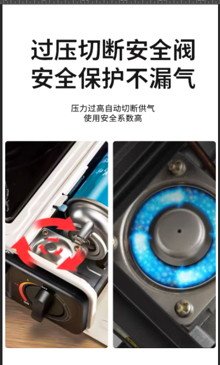 过压保护安全阀,放心使用;;节能省气,强大火力;;卡式炉手提盒包装,携带方便;