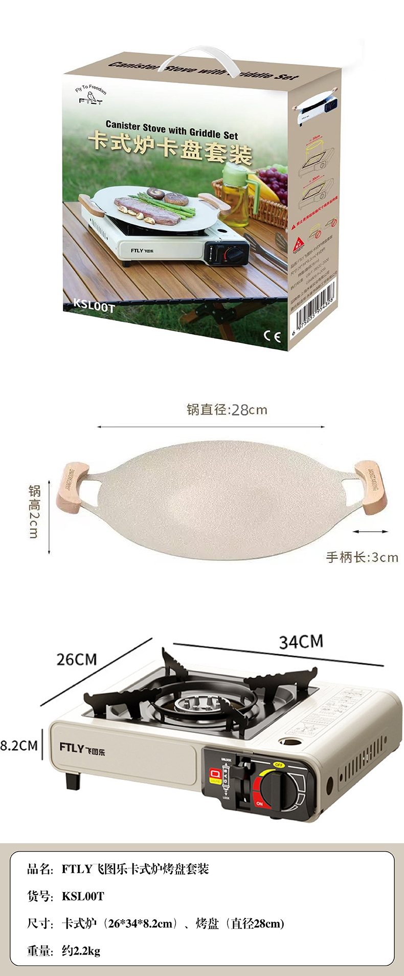 尺寸:26*34*8.2cm(卡式炉)烤盘(直径28cm)