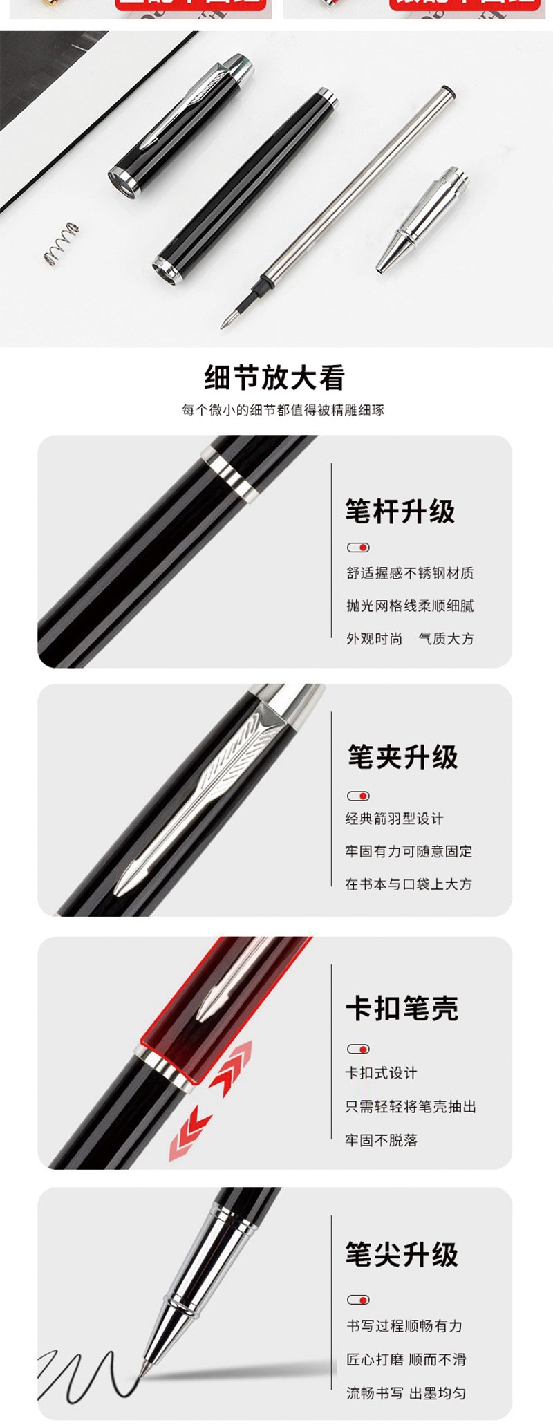 轻量 316 不锈钢材质(减轻通勤 / 差旅负担);随手别在笔记本 / 西装口袋,实用又精致;多场景设计用途