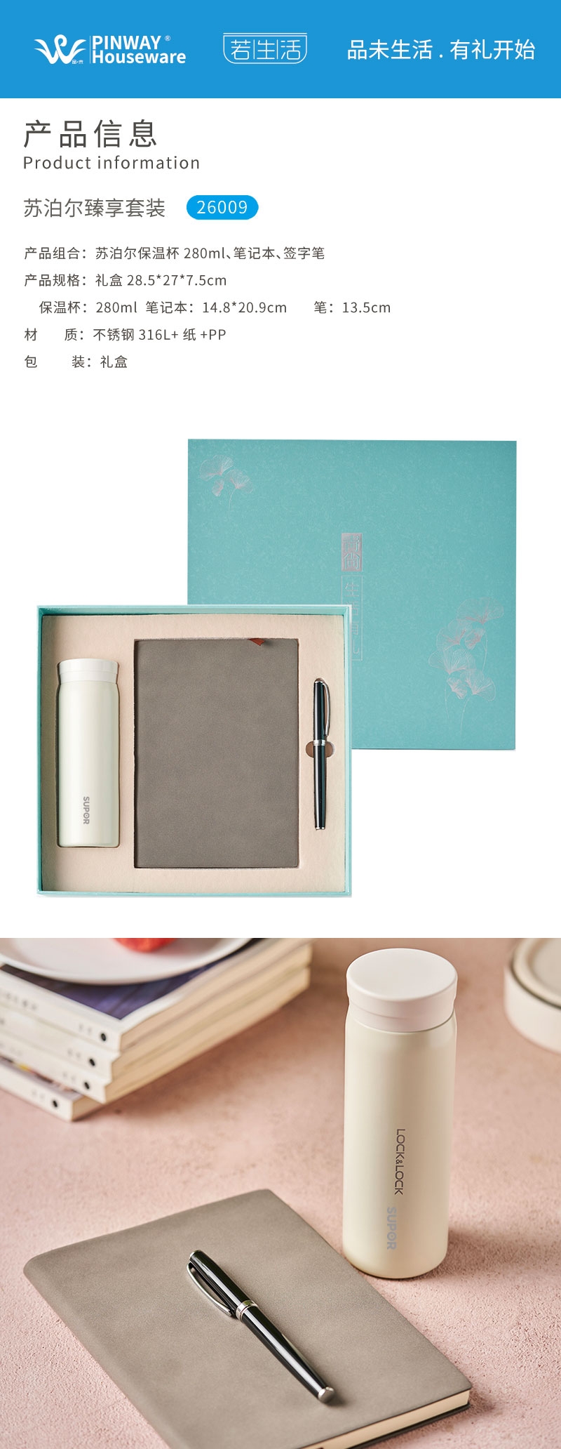 若生活 保温杯笔记本签字笔伴手礼26009