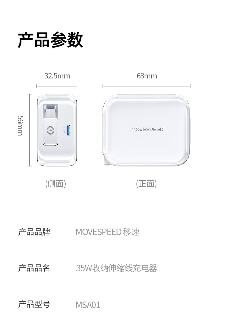 移速 35W伸缩线氮化镓充电器MSA01