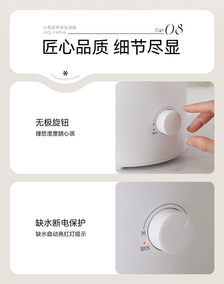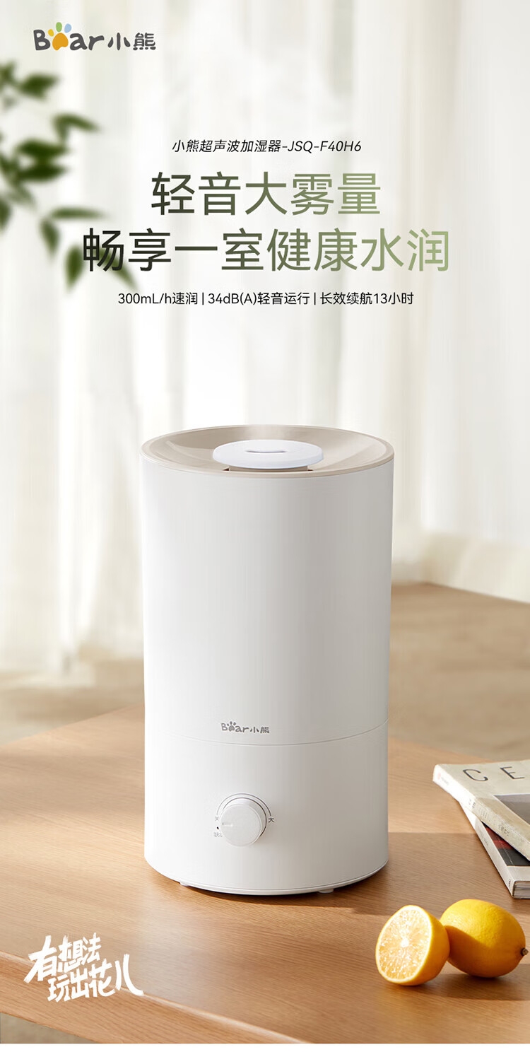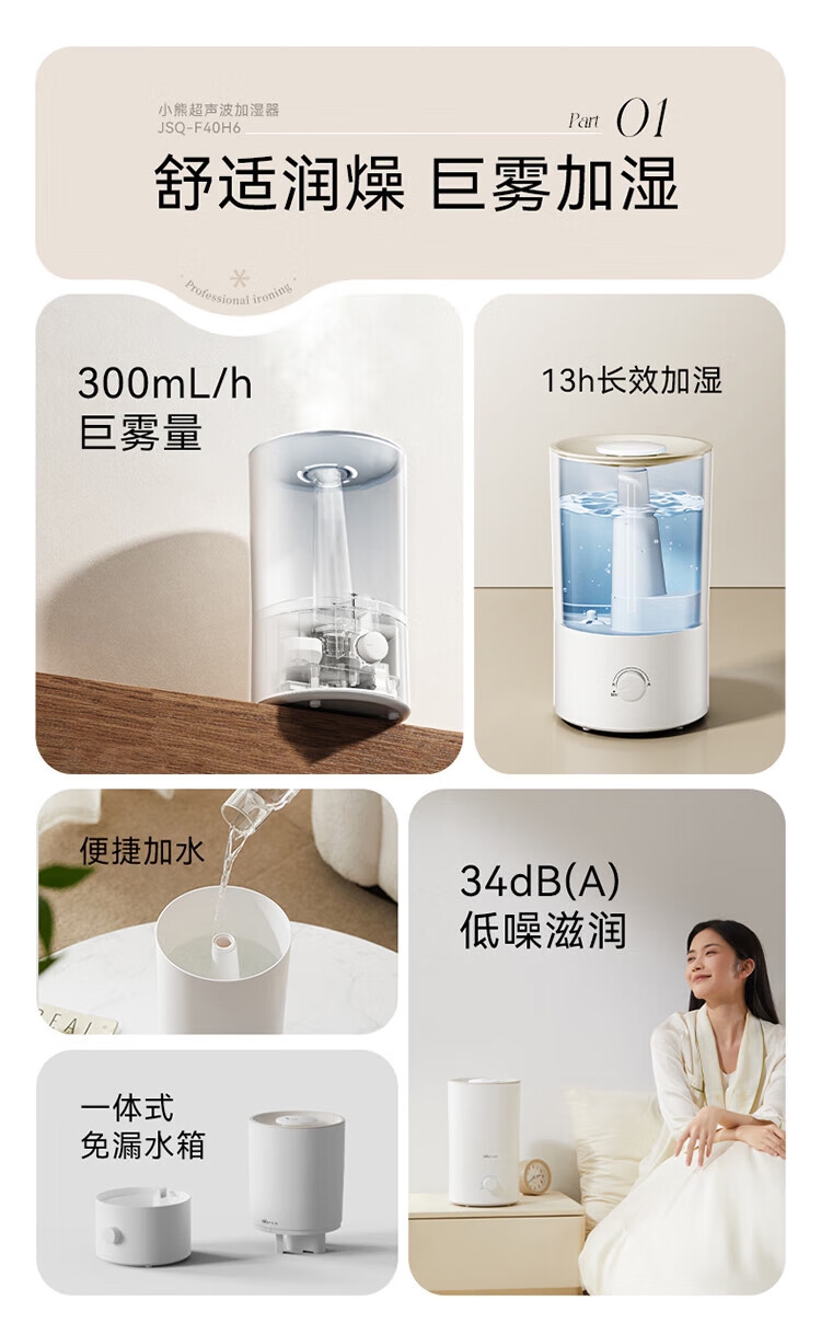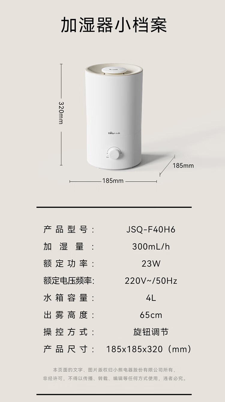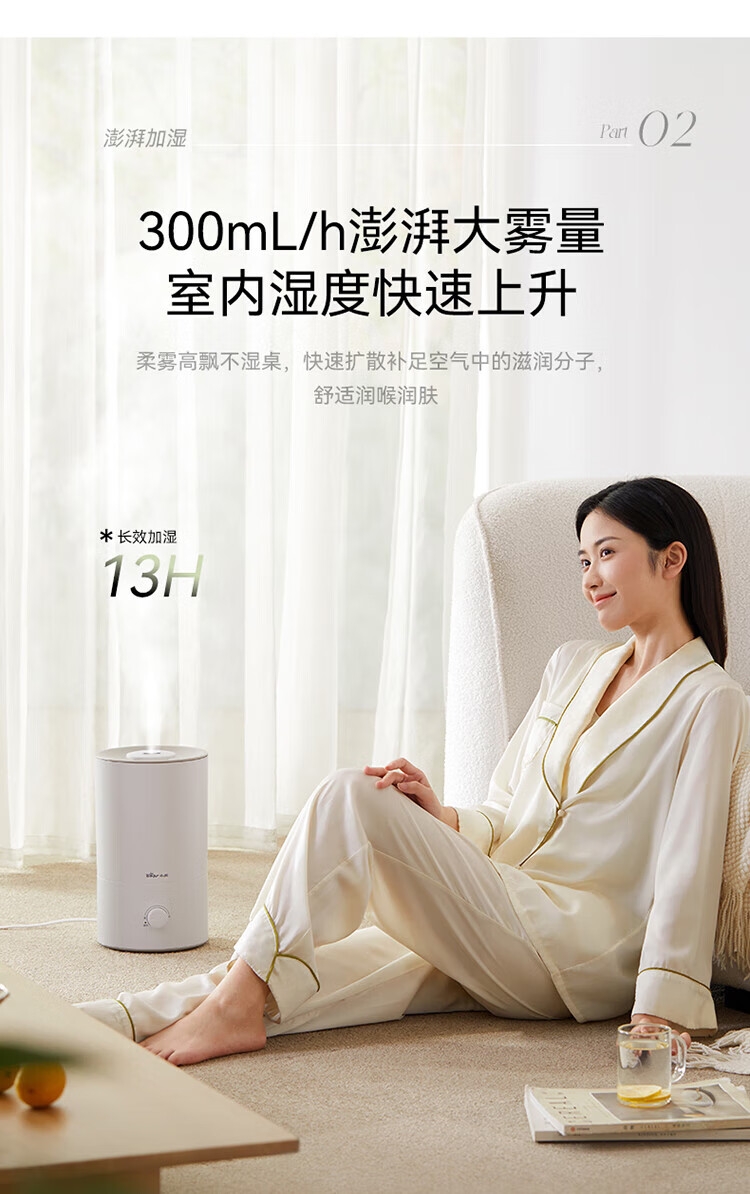 4L容量水箱;缺水断电保护;300ml/h加湿量