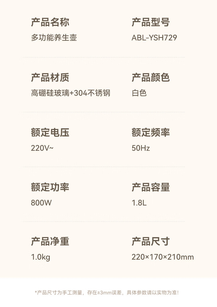 艾贝丽 多功能养生壶1.8LABL-YSH729
