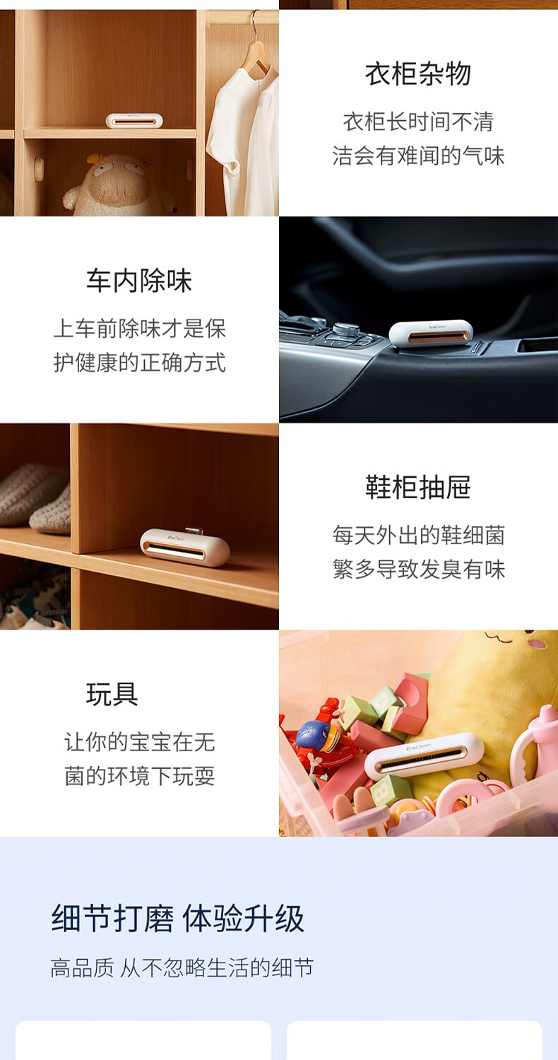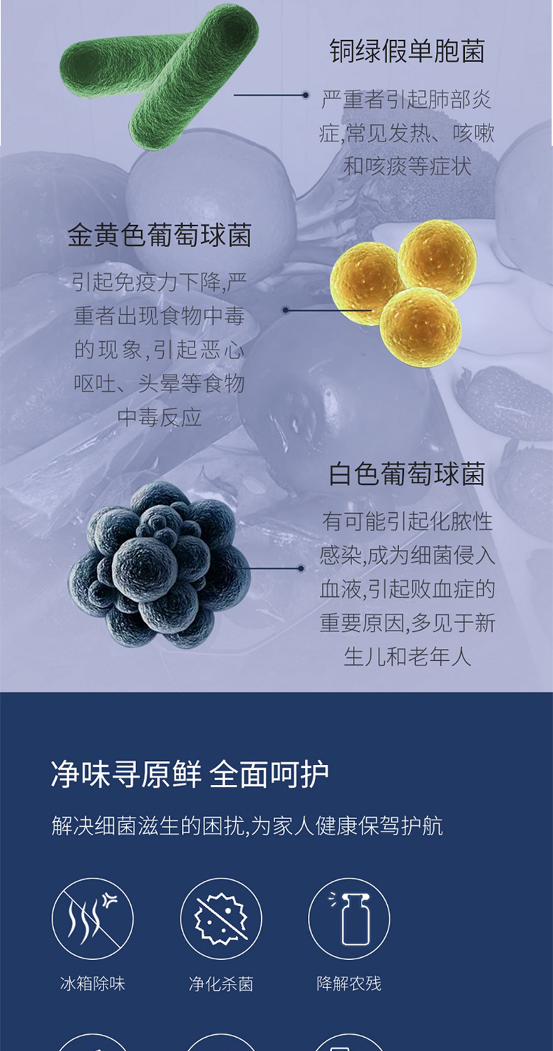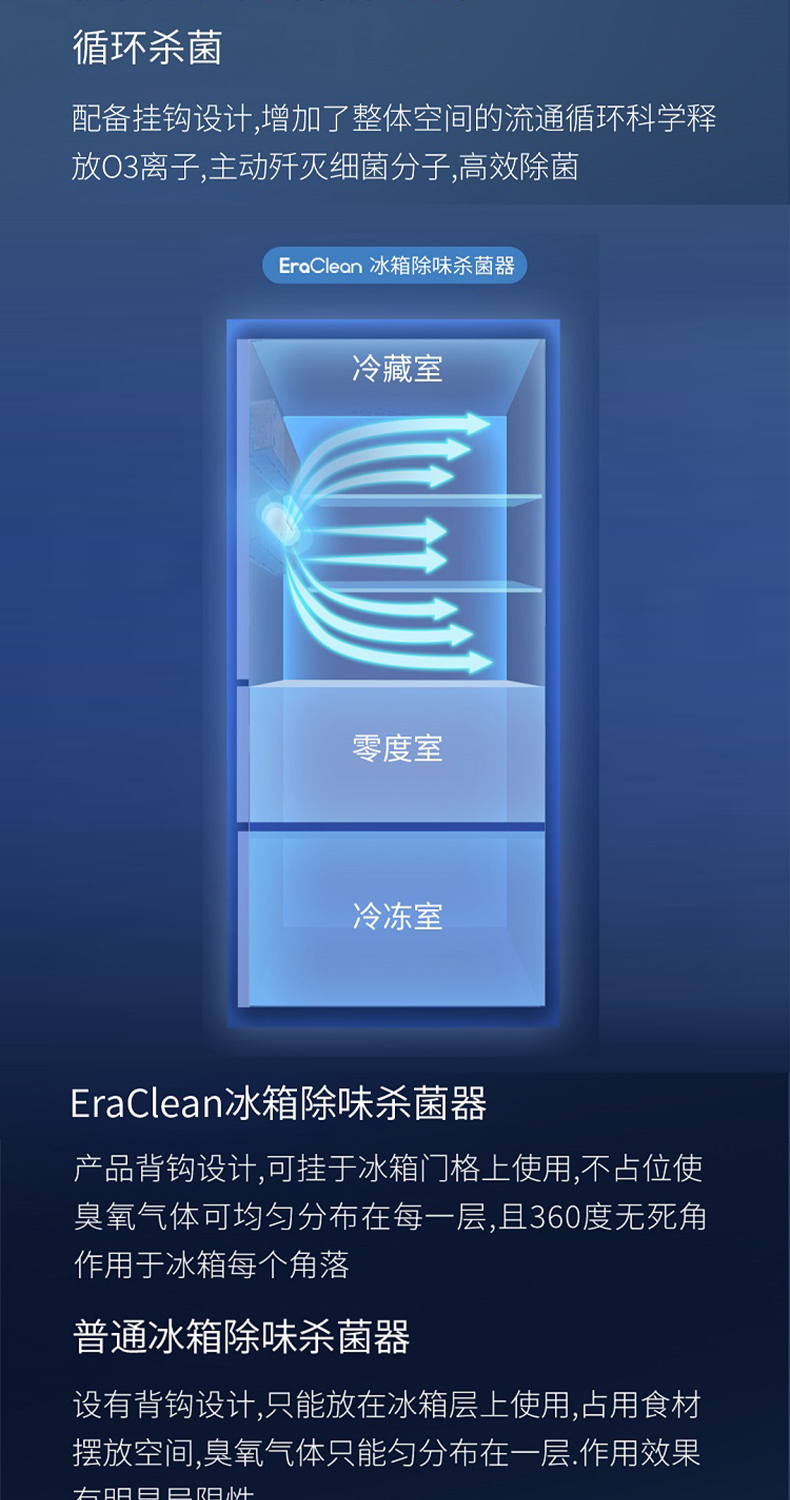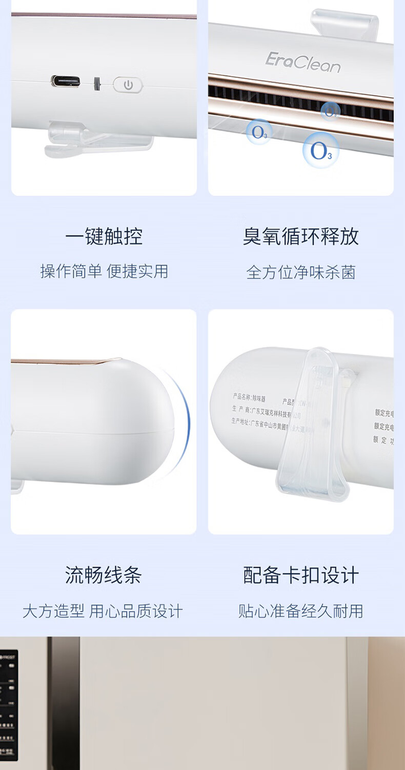 •活性氧净化冰箱异味;;•杀菌率大于99.9%;;•去除农残;•果蔬长效保鲜;;•内置聚合物锂电池,安全超长续航;•Type-C接口支持USB充电