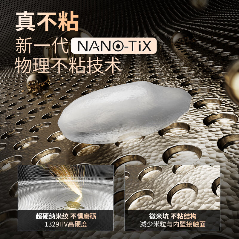 真钛0涂层内胆,健康安全饭;国家Ⅱ级不粘,真正不粘饭;新一代NANO-TiX超硬钛合金;2.0mm加厚储热内胆,胆厚饭才香;10大花样料理菜单