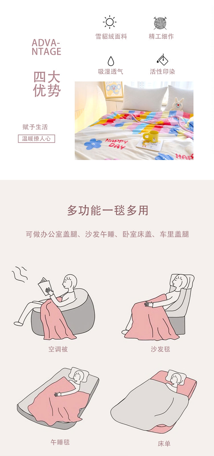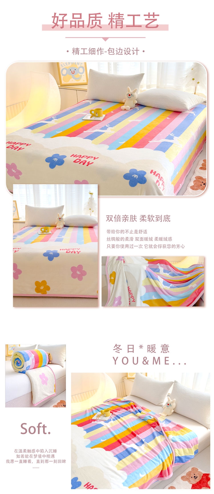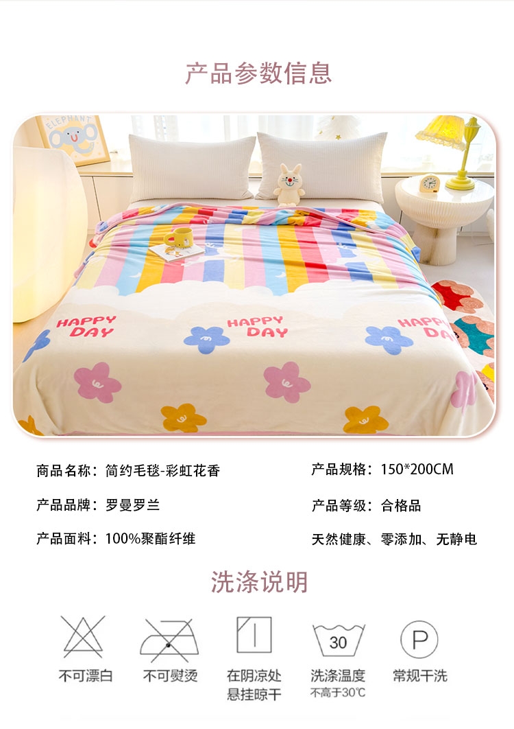 罗曼罗兰 简约毛毯-彩虹花香776332