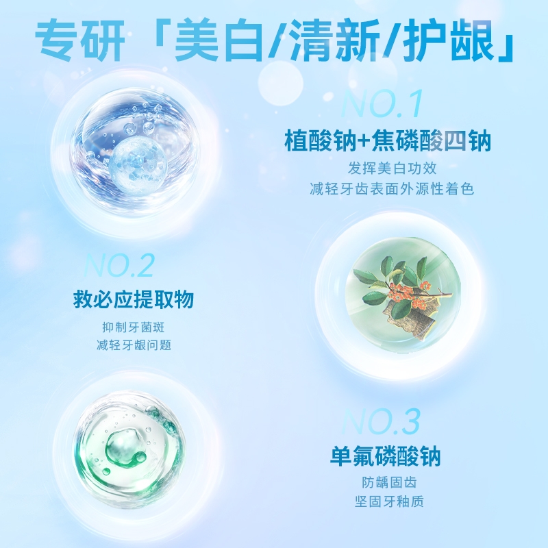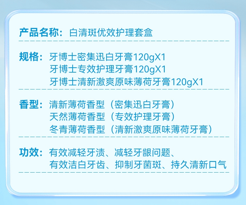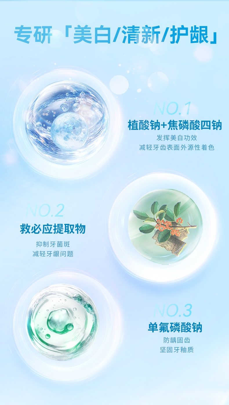 清爽口感 清新口气;减轻牙龈问题;一套多效 细致呵护