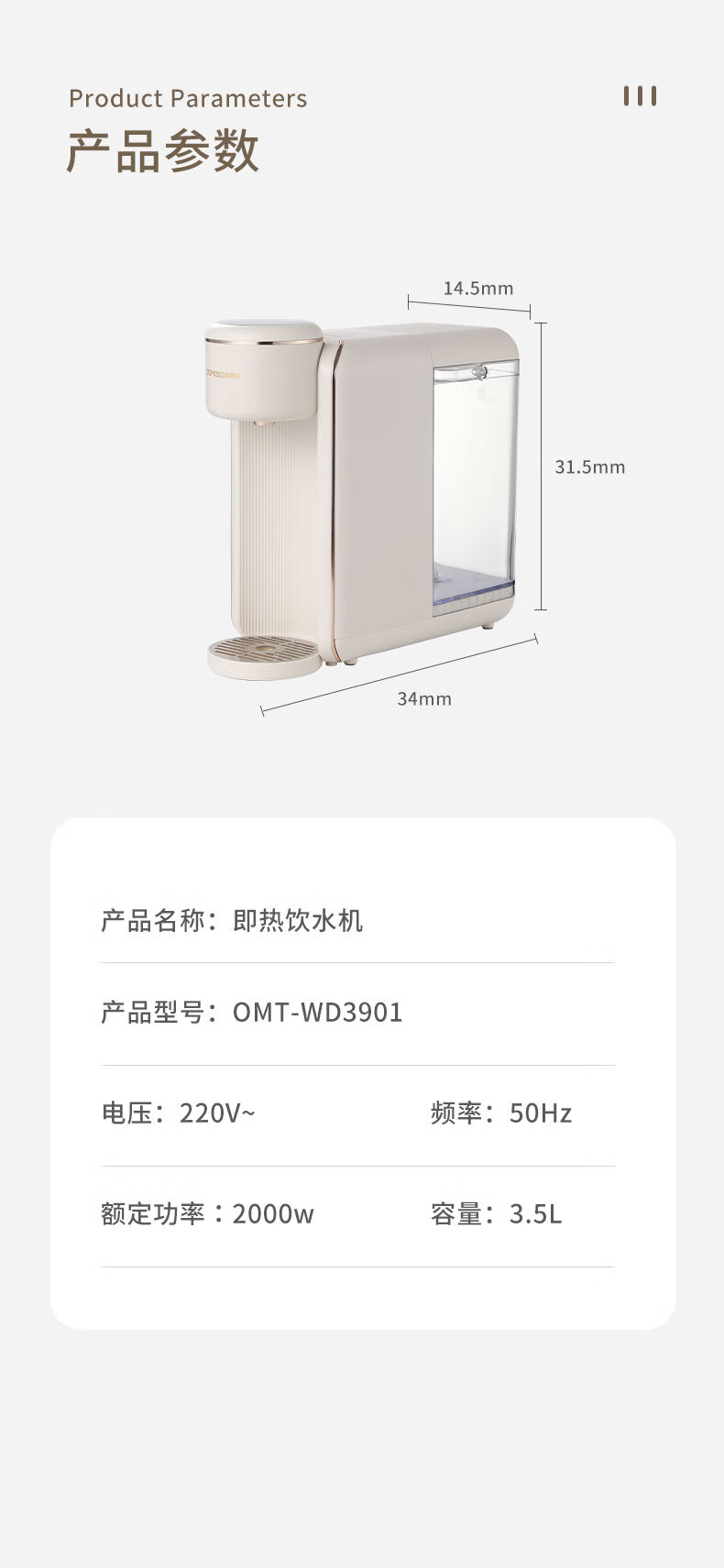 欧美特 即热式电热水壶家用台式饮水机OMT-WD3901