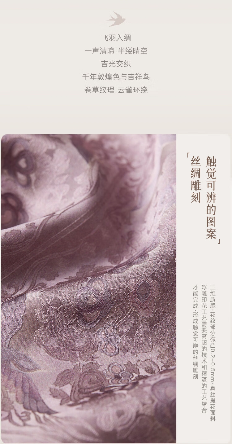 轻盈如羽,丝滑贴肤;立体丝绸雕刻,触感革新;精心调制的珠光色系富贵典雅很好搭配
