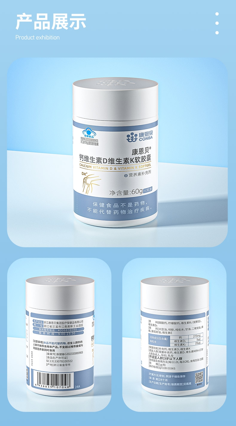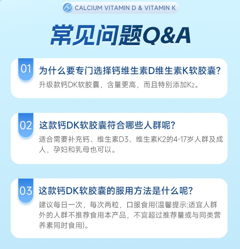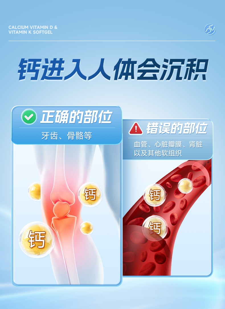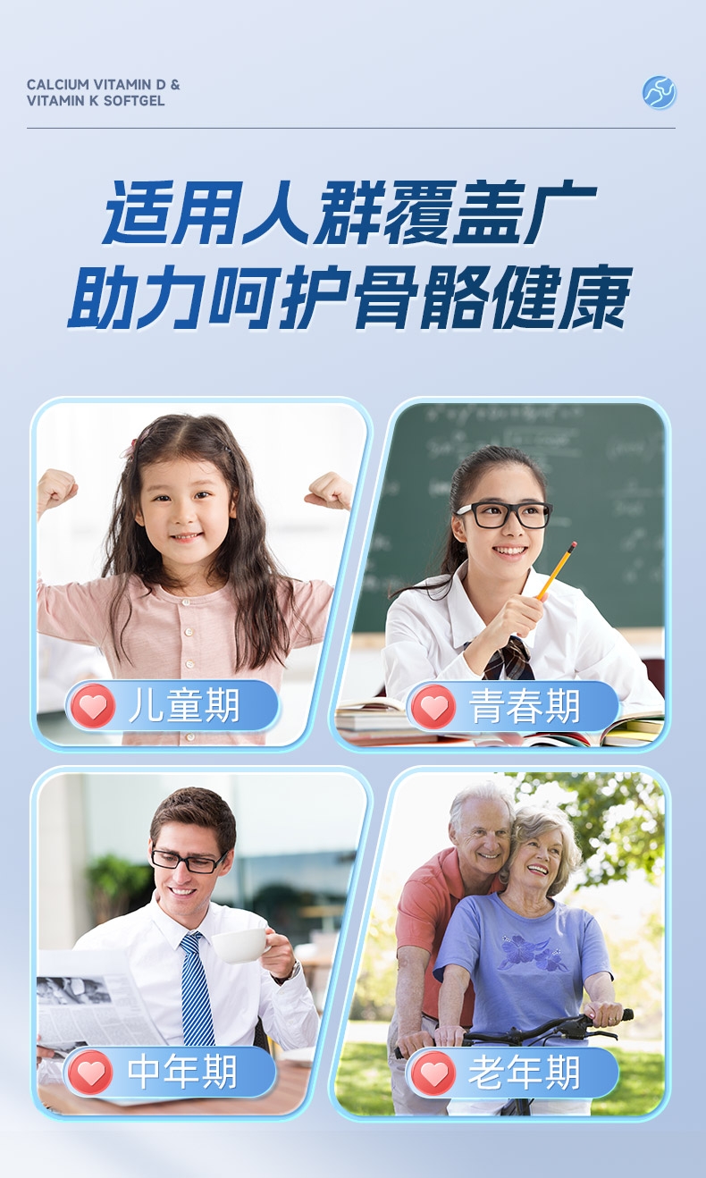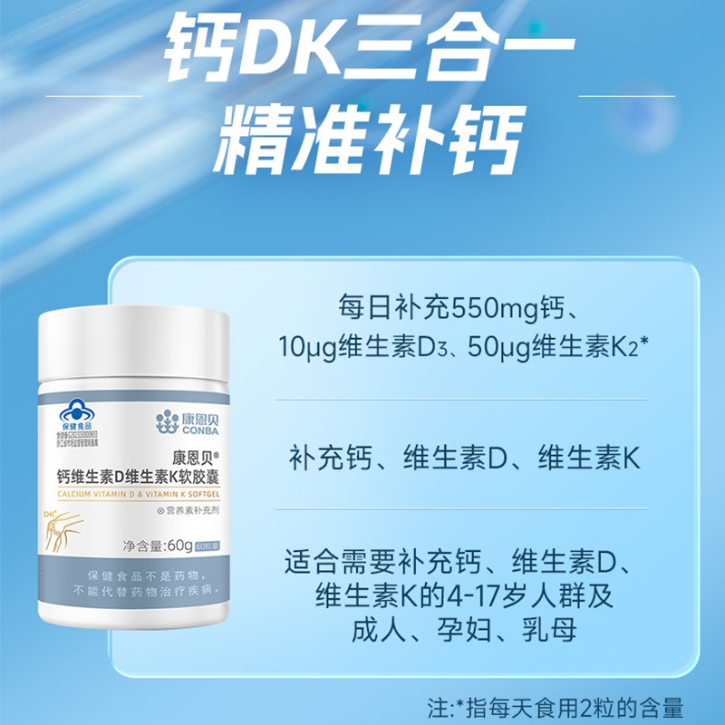 三效合一 补钙闭环 精准助力骨骼健康;补充钙、维生素D、维生素K;每日1次,每次2粒,食用方法:口服