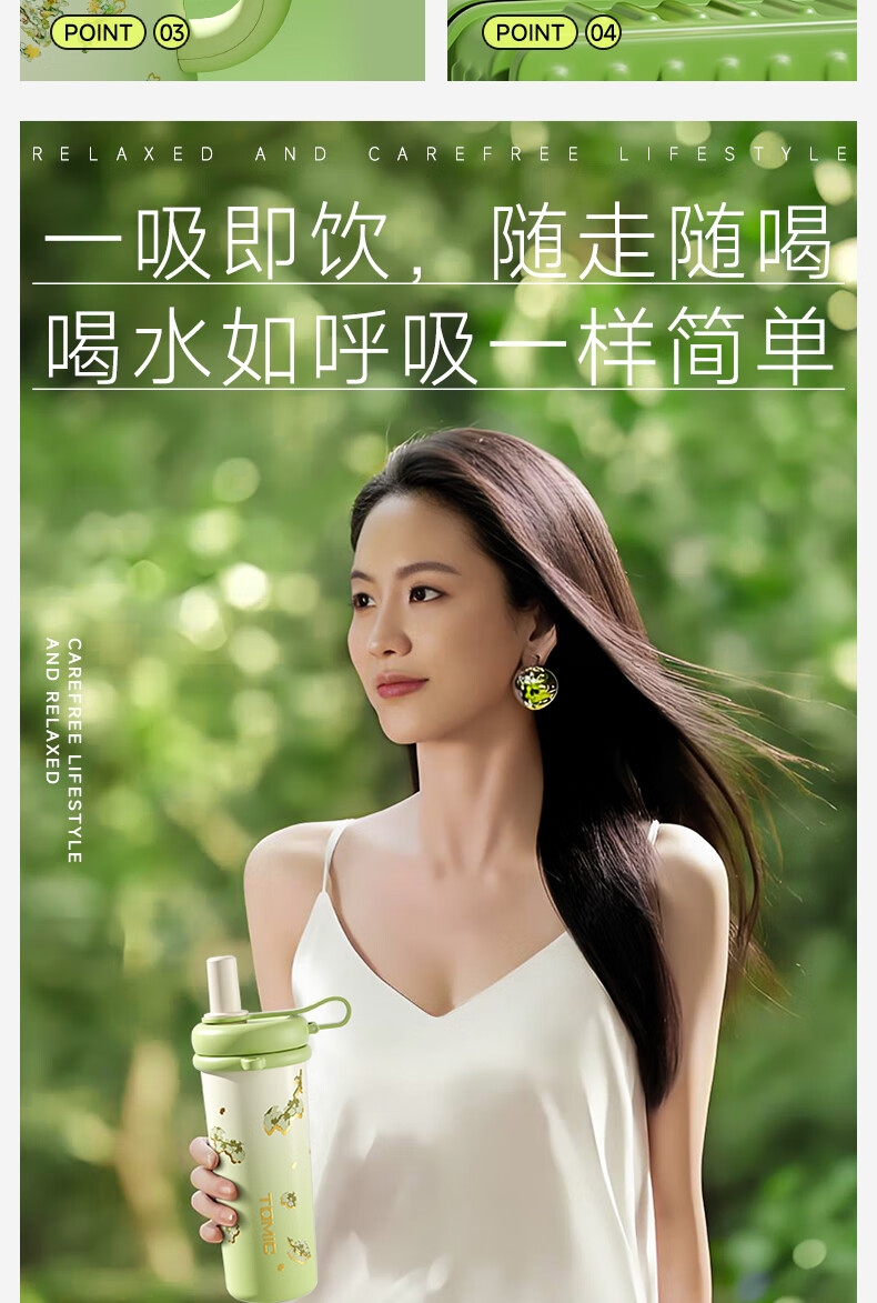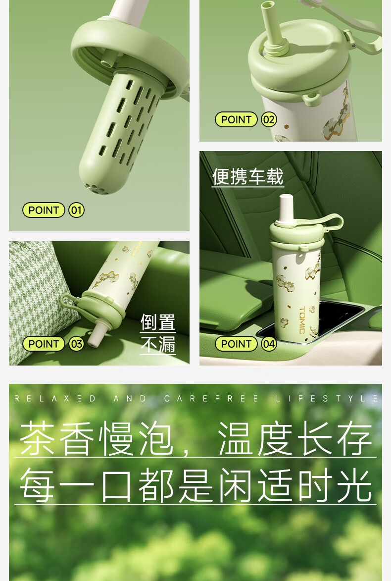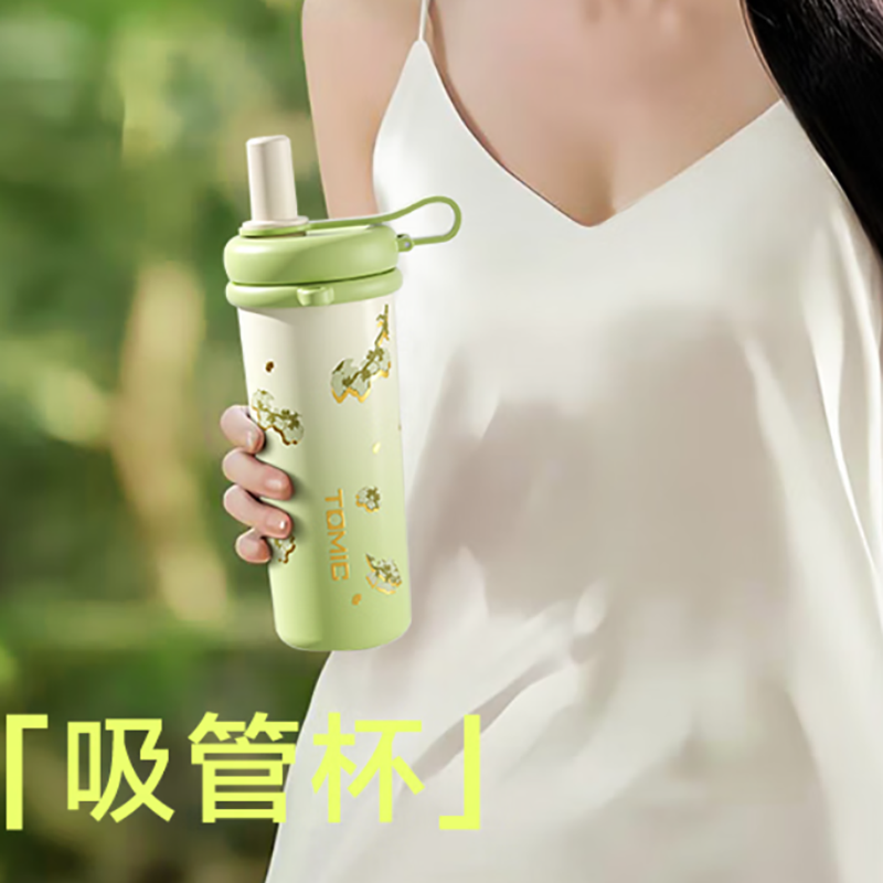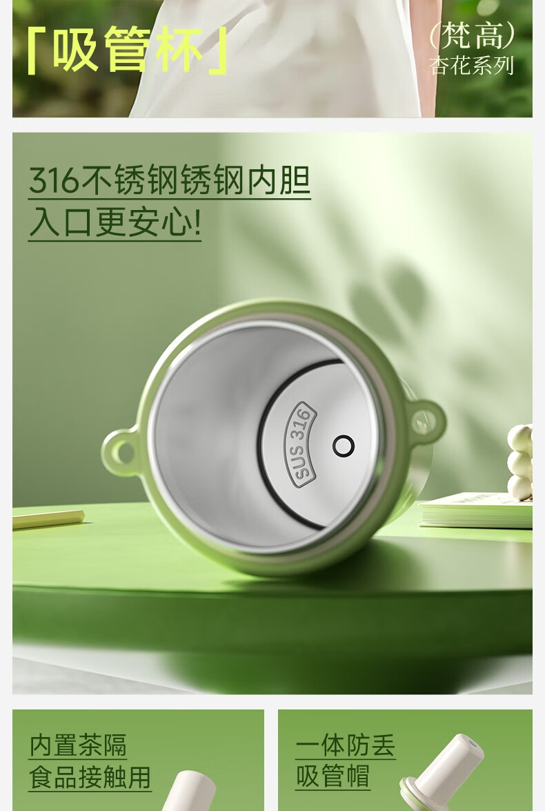316不锈钢内胆; 带吸管帽,环保防尘;拎绳设计,方便携带