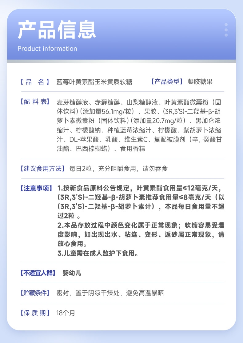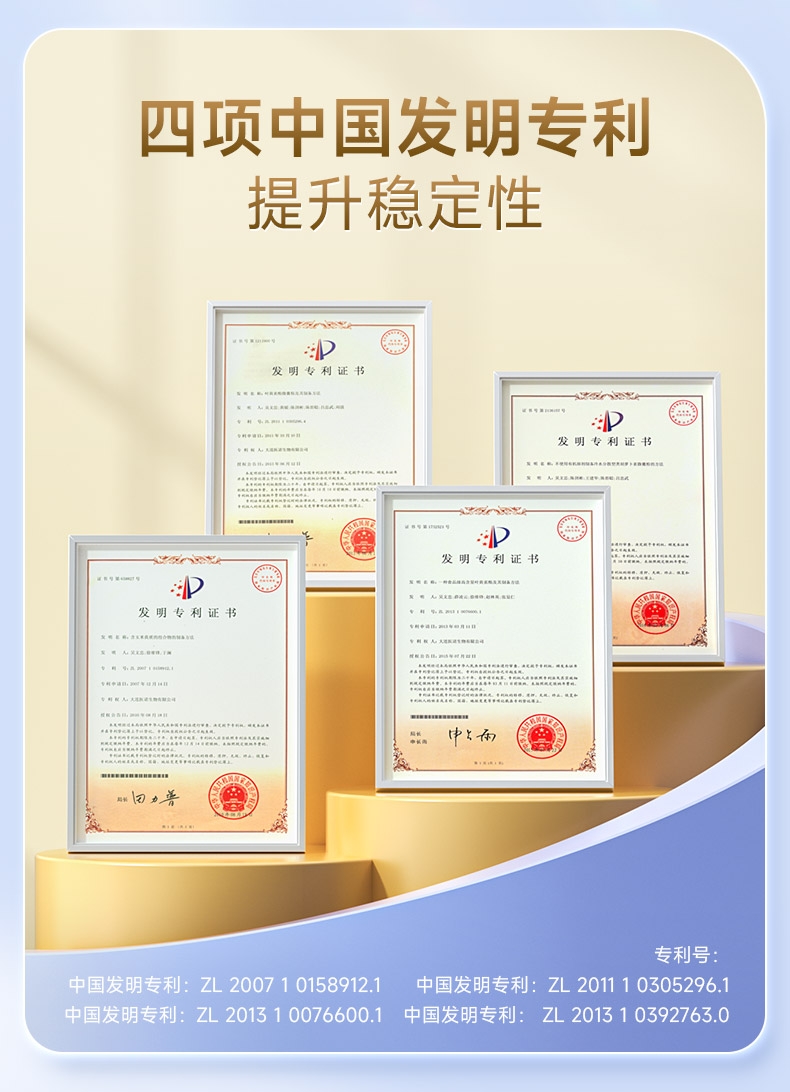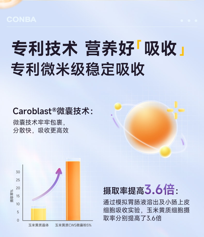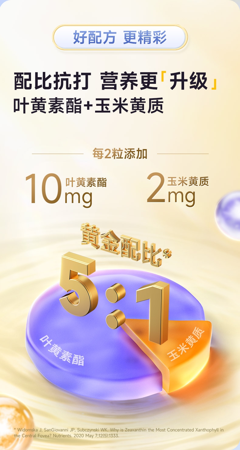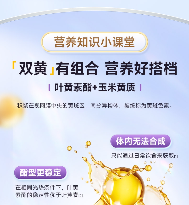 专利技术 营养好吸收 专利微米级稳定吸收;一粒添加4种植物 精心补充多面防护;口感抗打水蜜桃味 好吃轻负担