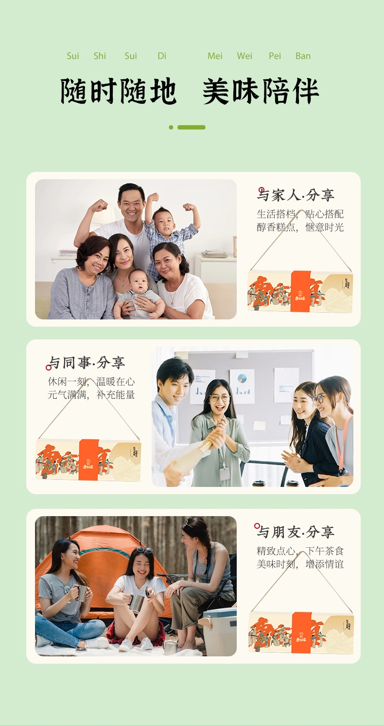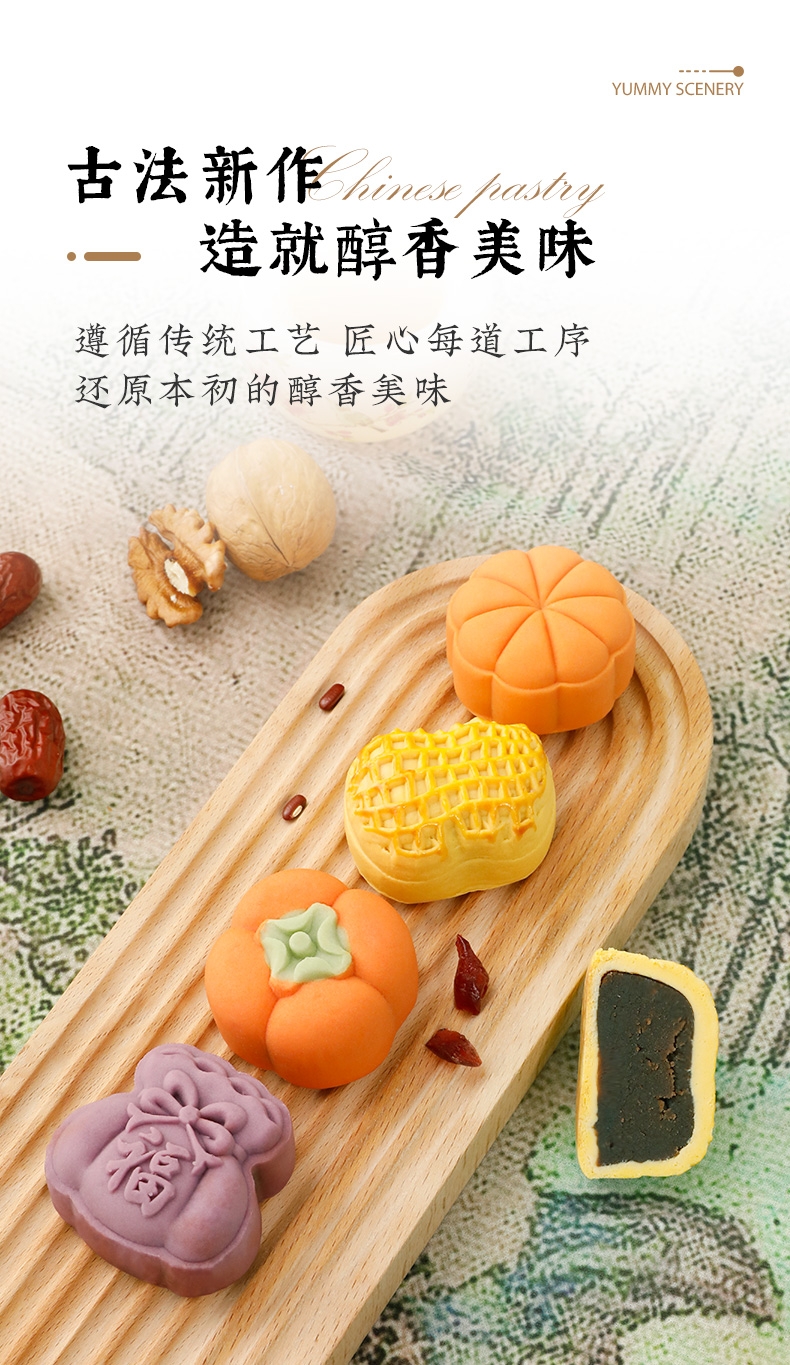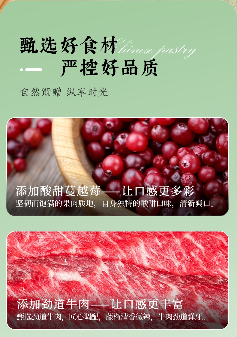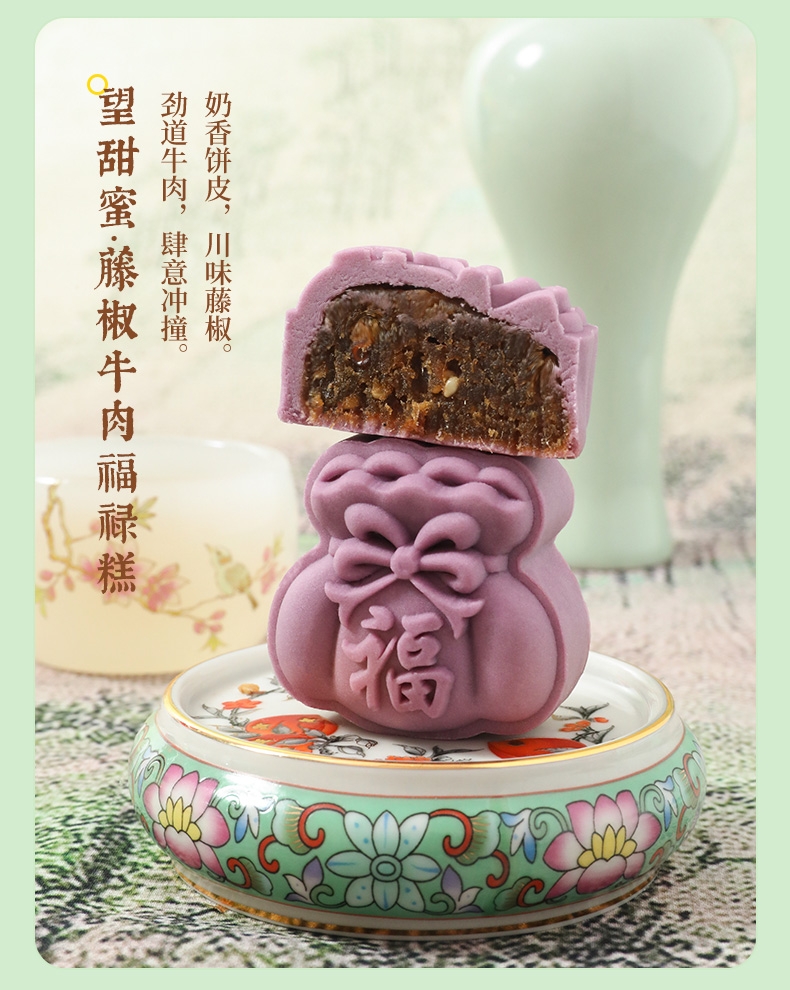 配置清单:柿柿如意·蔓越莓软心糕40g*2 望甜蜜·藤椒牛肉福禄糕40g*2 望美好·枣泥核桃吉祥糕40g*2 望幸福·相思苦荞豆沙饼40g*3